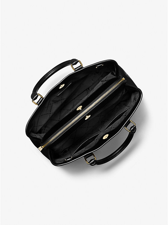 Ключ к изысканности. Сумка-портфель Camille с гладкой отделкой сочетает в себе элегантный, обтекаемый силуэт с изящным замком и ключом, воплощая собой изысканный гламур. Носите ее за верхние ручки или перекиньте через плечо через регулируемый ремень для создания современного образа. Сочетайте ее с любимой белой футболкой и джинсами, чтобы придать новый облик классическим вещам для отдыха.