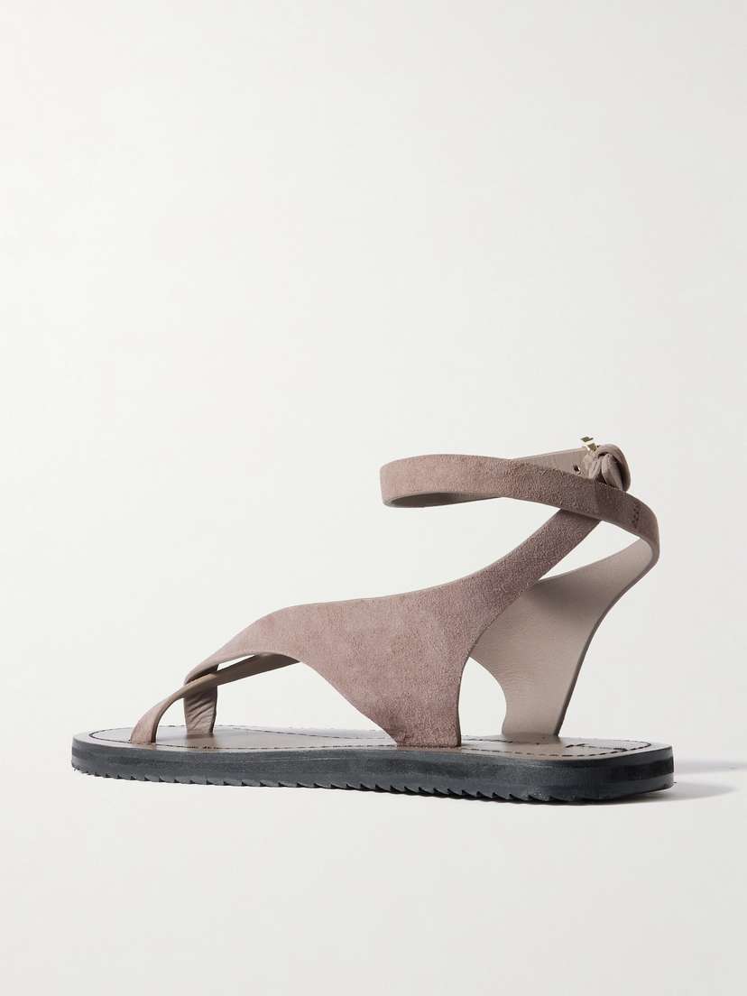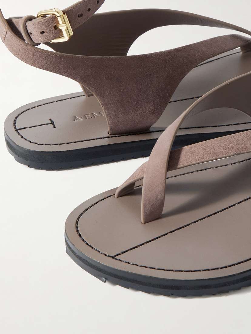A.EMERY разрабатывает обувь, уделяя особое внимание качеству материалов, изысканному минимализму и безупречному мастерству. Эти сандалии «Millar» изготовлены из бархатистой замши и имеют тонкие перекрестные ремешки, охватывающие щиколотку. Плоская резиновая подошва подчеркивает форму.