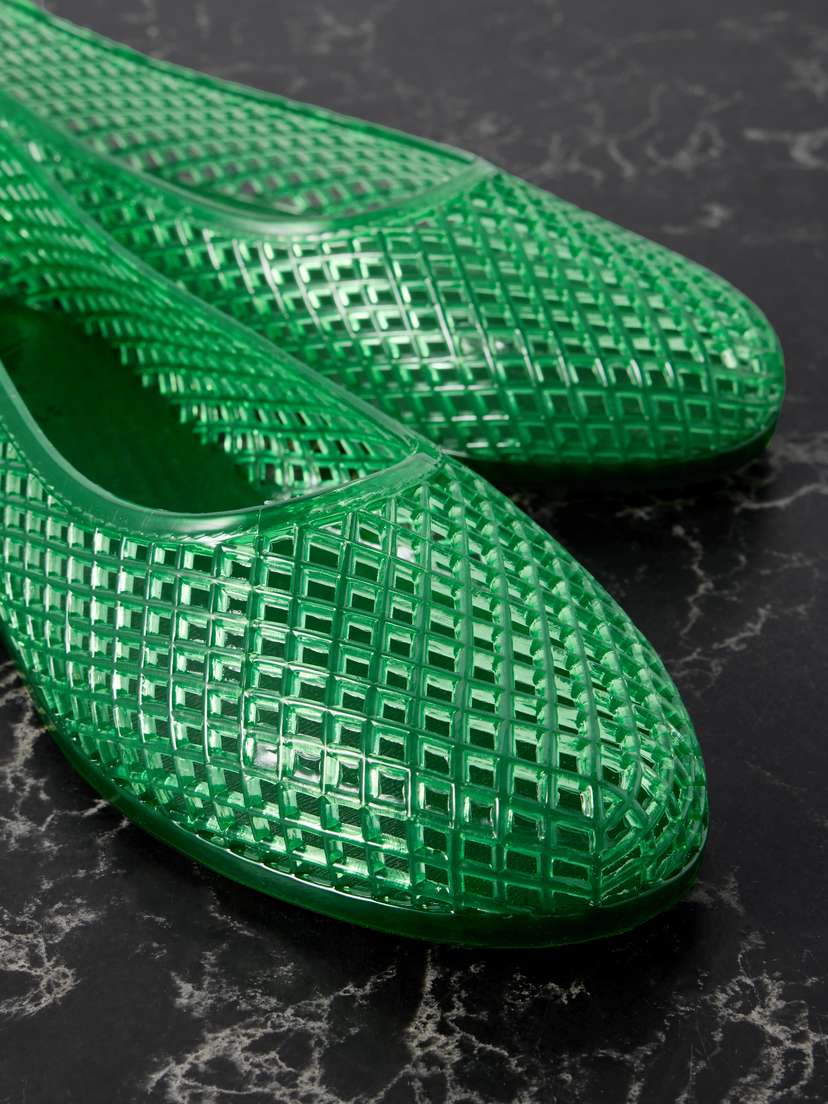 Балетки «Iro» из древнегреческих сандалий, созданные специально для пляжа, изготовлены из резинового, моющегося ПВХ. Решетчатая конструкция делает их особенно воздушными и гибкими.