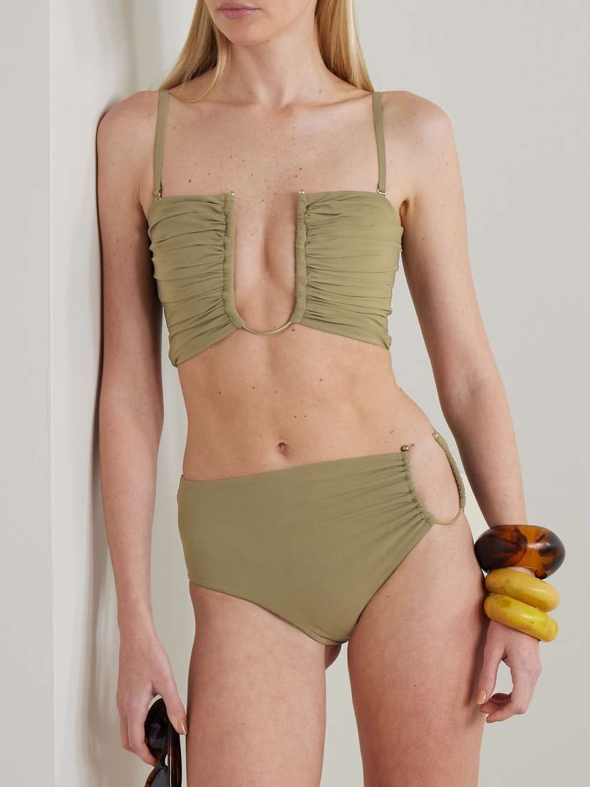 Трусики-Бикини с вырезами и декоративными элементами Christopher Esber, бежевый