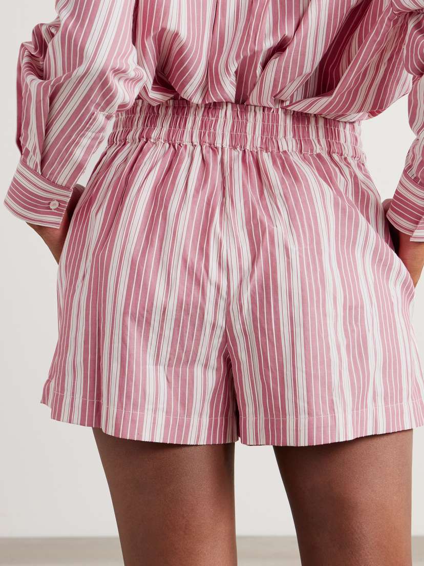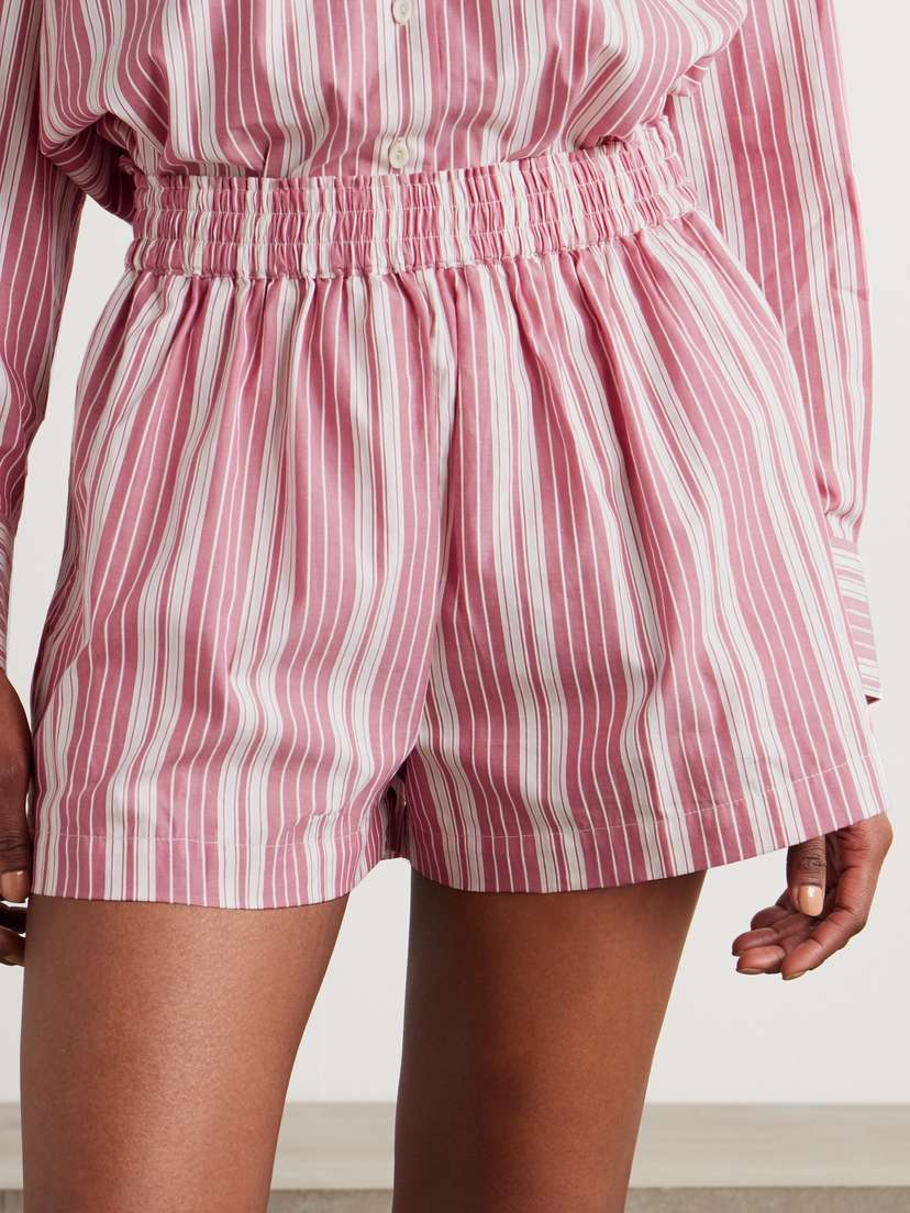 Шорты «Elva» от Faithfull сшиты по образцу боксеров, так что представьте, насколько они удобные. Они изготовлены из хлопка, украшены игривыми розово-белыми полосками и имеют эластичный пояс. Носите их с подходящей рубашкой из нашей подборки.