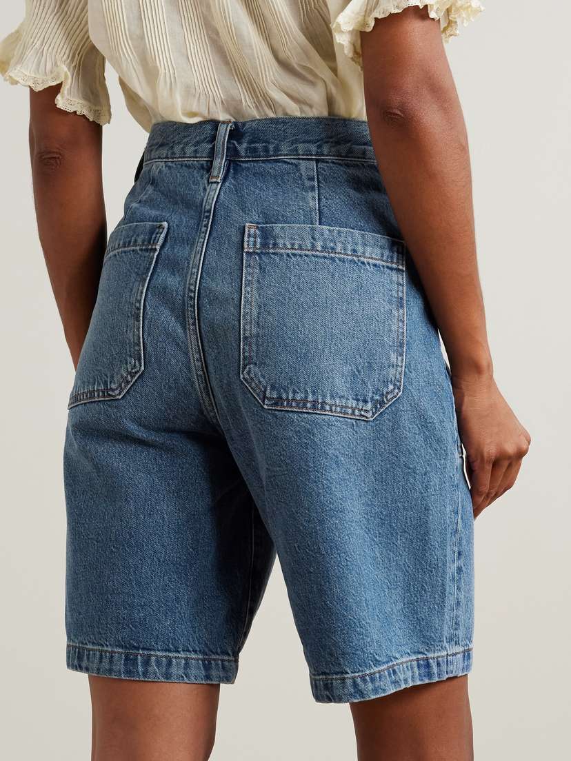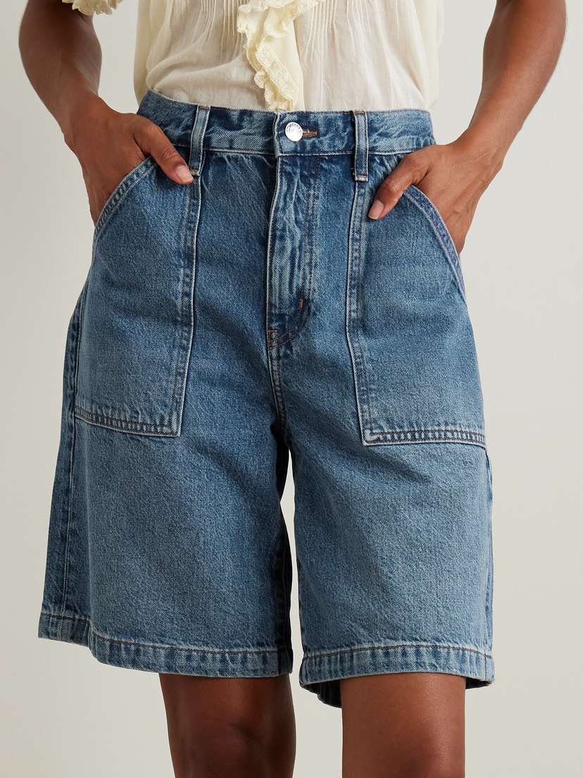 Шорты FRAME - вневременные, и это неудивительно. Они сшиты из не слишком выцветшего синего денима с аккуратно прошитыми манжетами.