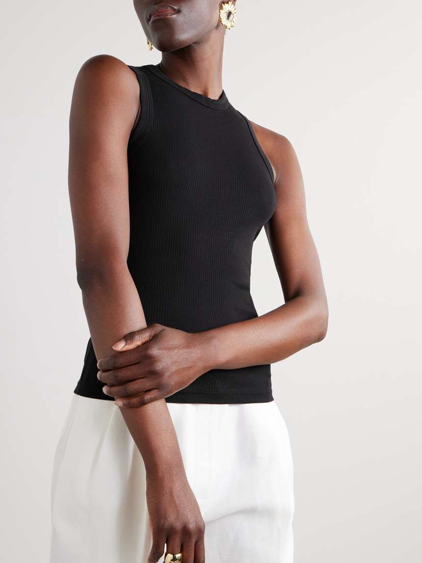 Ребристый топ из эластичного хлопка-супимы James Perse, черный