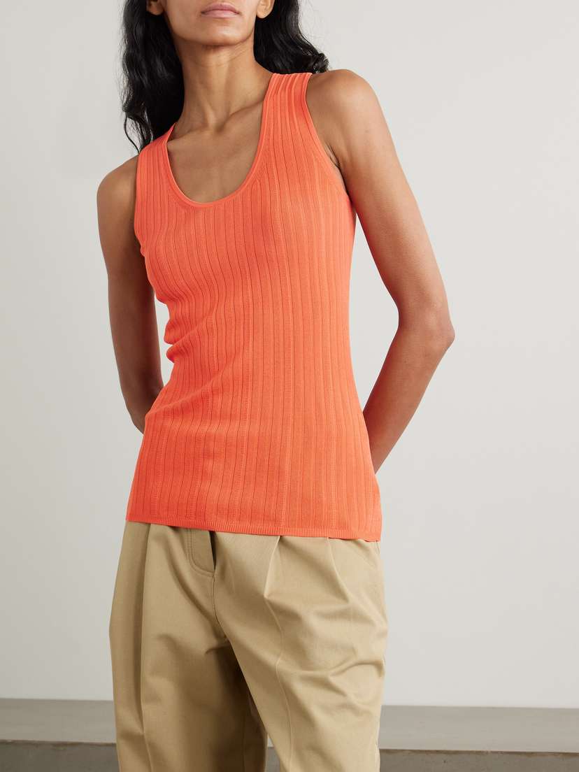 Майка Джозефа выполнена в рубчик для плотного прилегания, а элегантный вырез на спине делает ее простой и элегантной. Теплый оттенок «Закат» удивительно универсален.