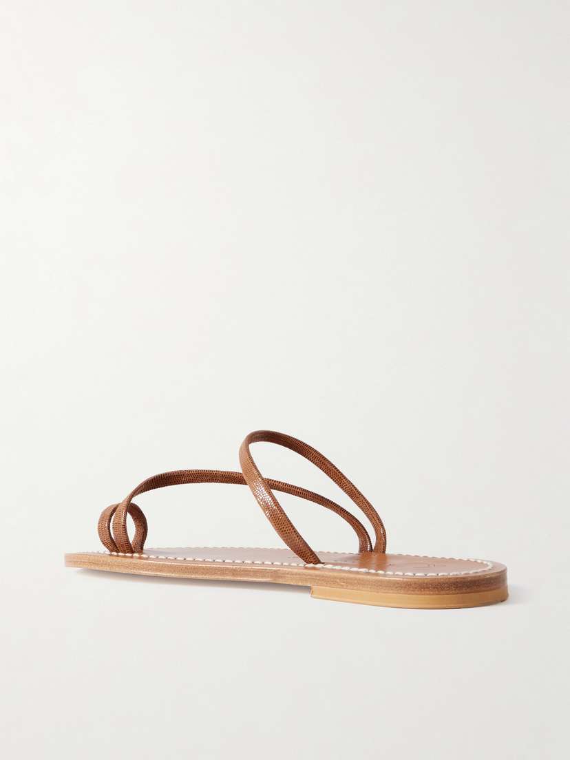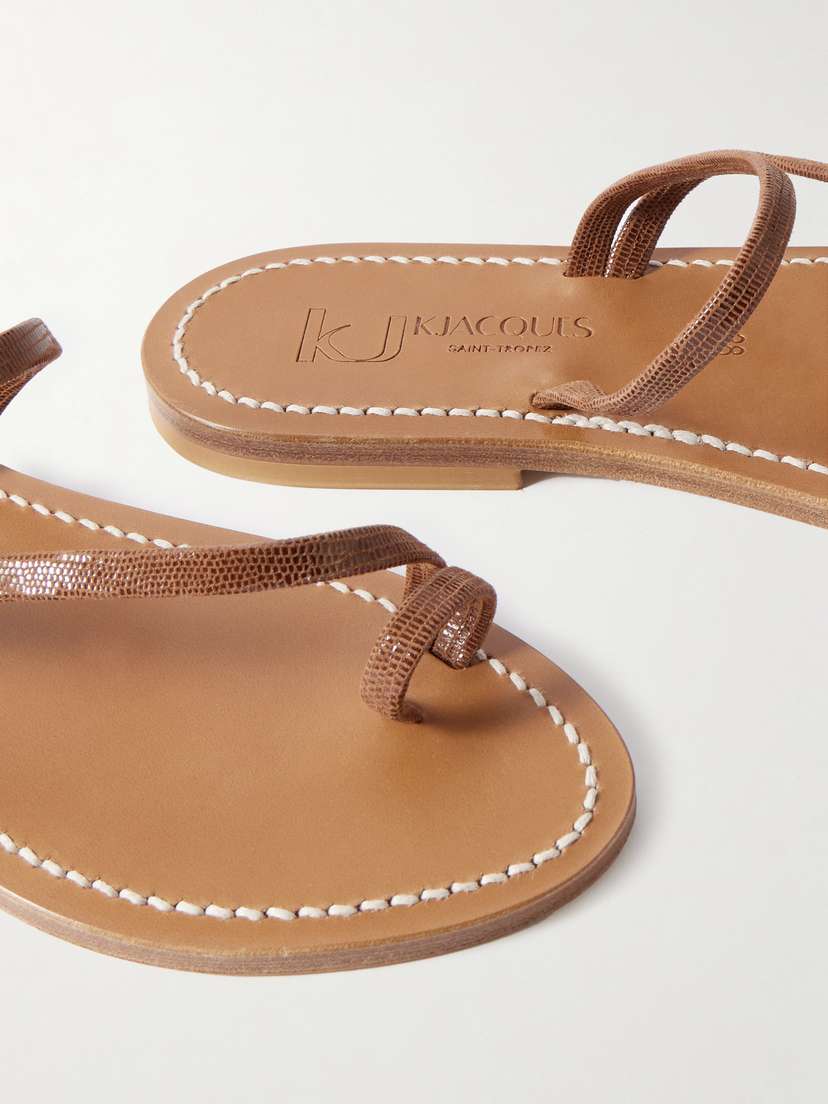 Обувь K Jacques St Tropez производится вручную во Франции с 1933 года. Эти шлепанцы Actium, созданные на основе почти векового мастерства, изготовлены из кожи с эффектом ящерицы и имеют тонкие перекрещивающиеся ремешки. Подберите педикюр в тон шоколадному оттенку.