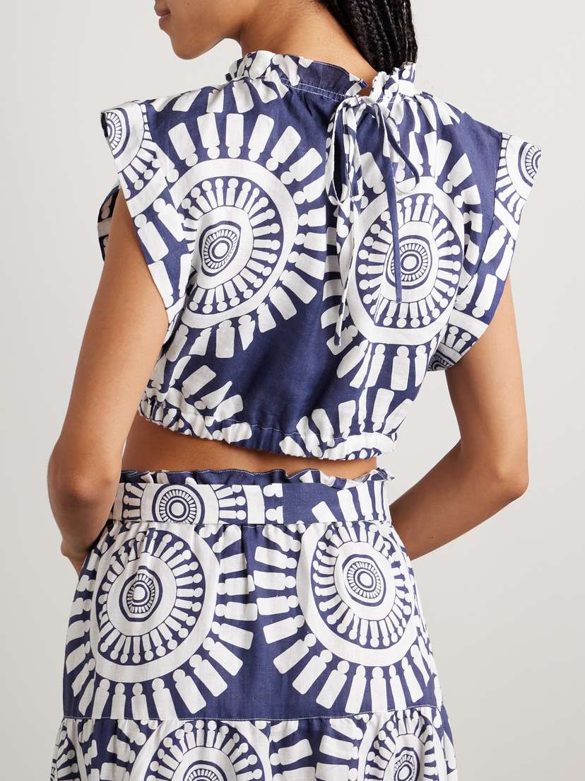Укороченный льняной топ с принтом Muna Lemlem, синий