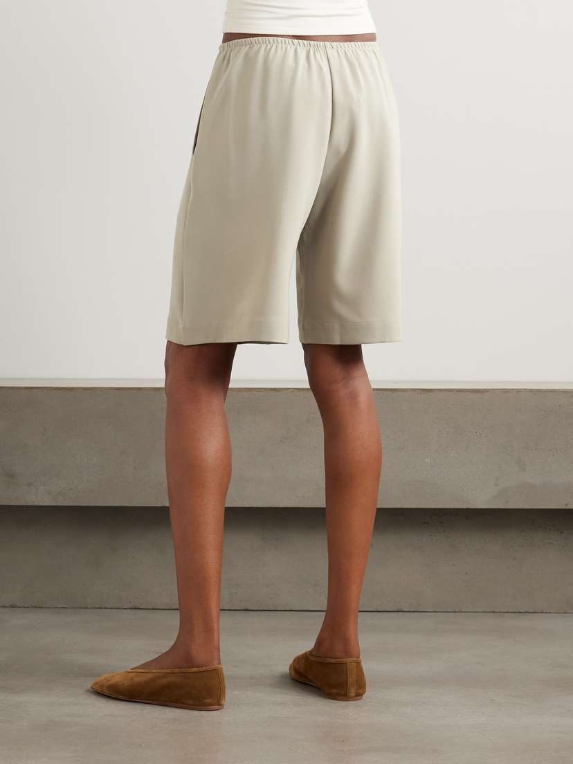 Коллекции LESET разработаны по модульному принципу, чтобы создать «идеальную систему комбинированных комплектов». Эти шорты «Arielle City», изготовленные в Лос-Анджелесе, сшиты из крепа, имеют свободный прямой крой до колена и пояс на шнурке. Носите их с подходящей майкой.