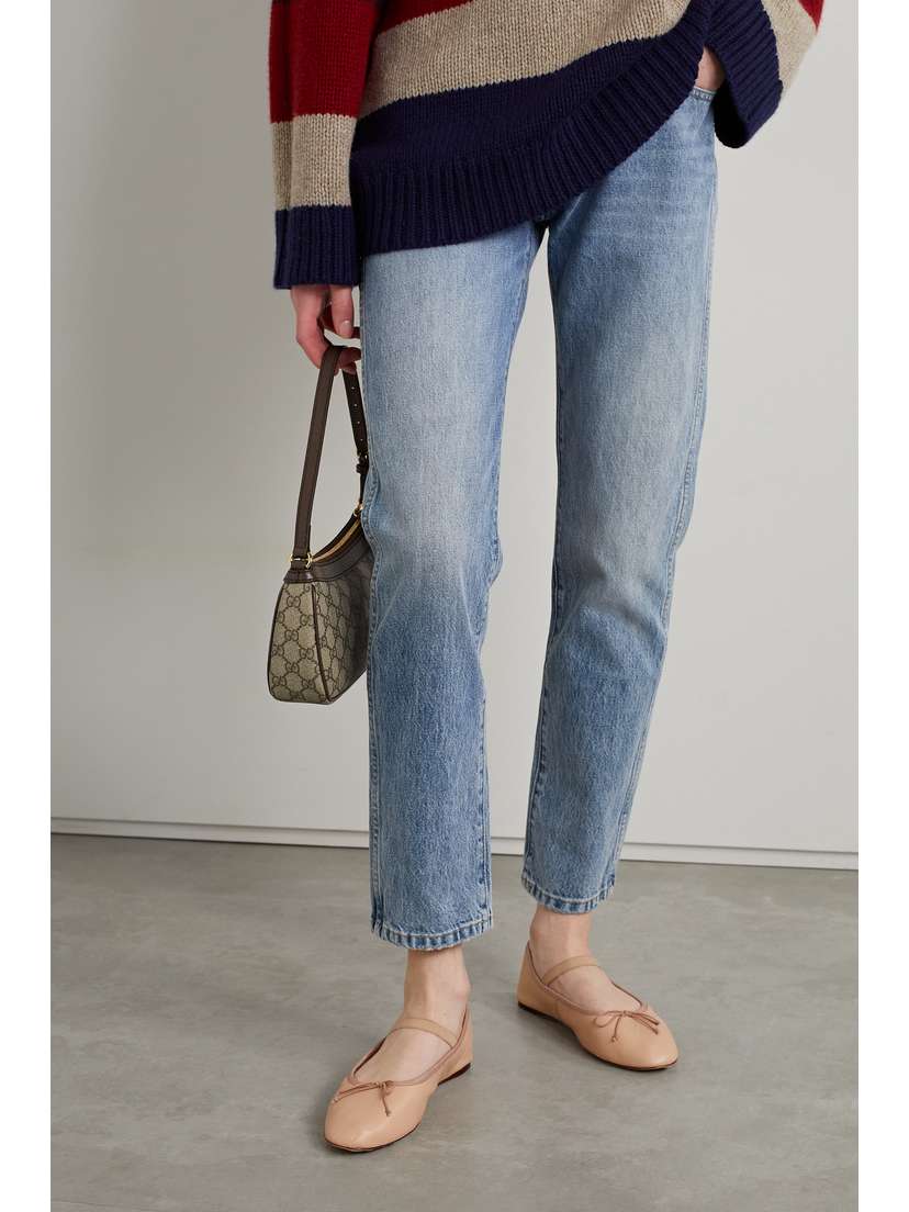 Балетки «Leonie» от Loeffler Randall искусно скроены так, чтобы выглядеть как настоящие балетки. Они изготовлены из бежевой кожи, украшены отделкой из репсовой ленты в тон и красивыми бантиками на круглых носках. Носите их с чем угодно: от джинсов до платьев.
