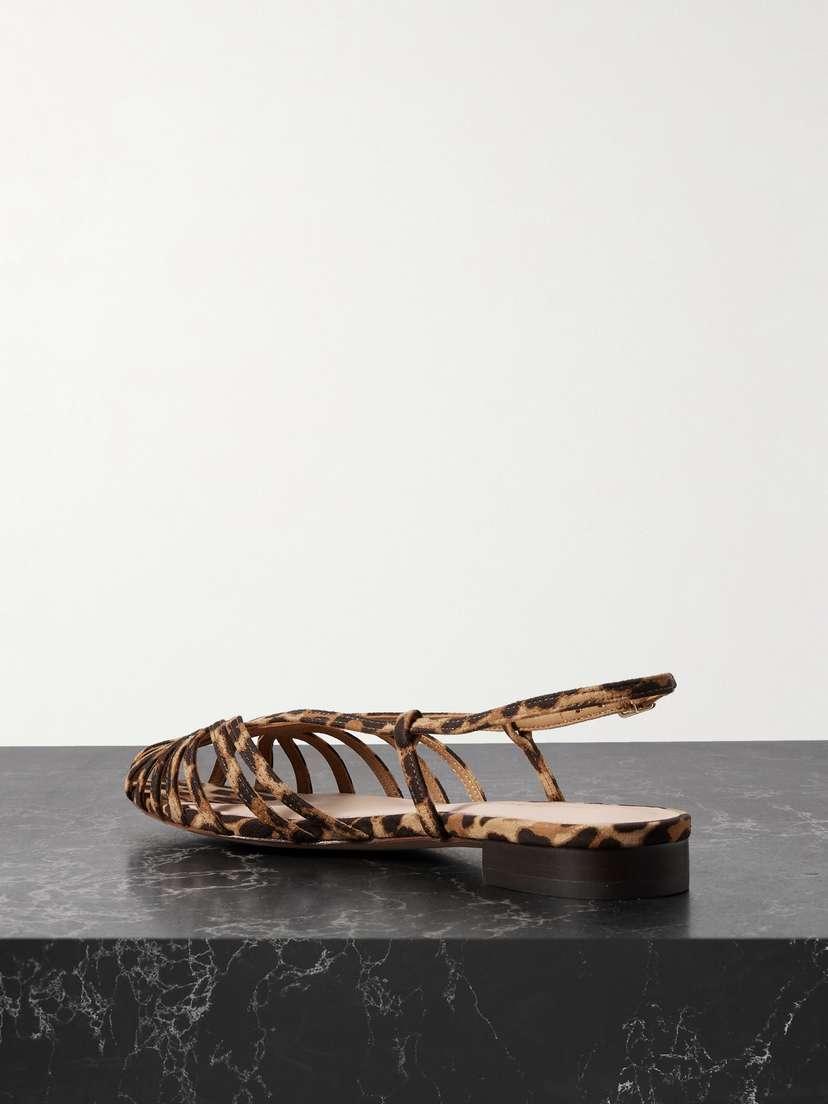 Сандалии «Devon» от Loeffler Randall имеют решетчатый дизайн, который элегантно обрамляет ногу. Они изготовлены из ткани с леопардовым принтом и имеют небольшой каблук и пряжки в тон для регулировки посадки.