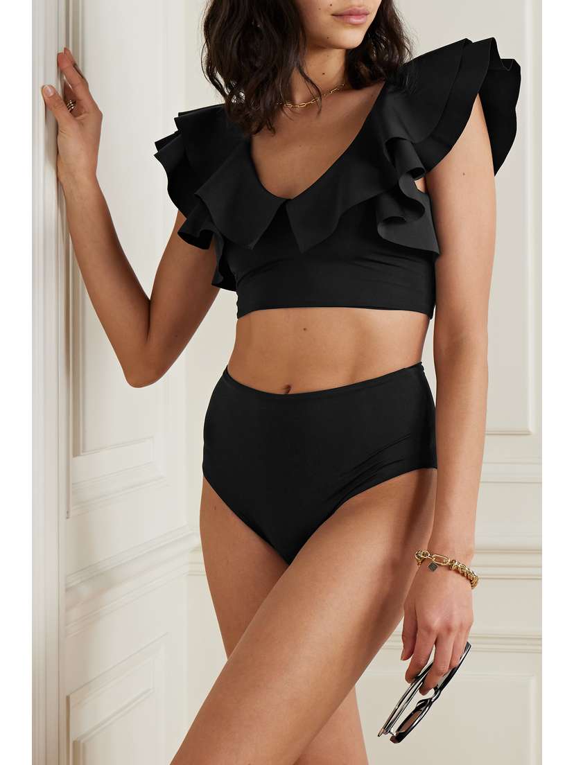 Бренд: Maygel Coronel Цвет: черный Мейджел Коронель создает купальники, воплощая женственность и комфорт. Это бикини «Mila» сшито вручную в Картахене (Колумбия) из гладкой эластичной ткани и украшено развевающимися оборками по V-образному вырезу. Трусики с высокой посадкой обеспечивают дополнительную защиту. Этот продукт произведен на местном уровне. Узнайте больше о NET SUSTAIN здесь.