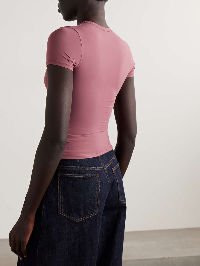 Одна из целей SKIMS - предлагать решения для любой фигуры. Эта облегающая футболка сшита из эластичного трикотажа и имеет классический круглый вырез. Сочетайте ее с чем угодно: от спортивных брюк до классической одежды.