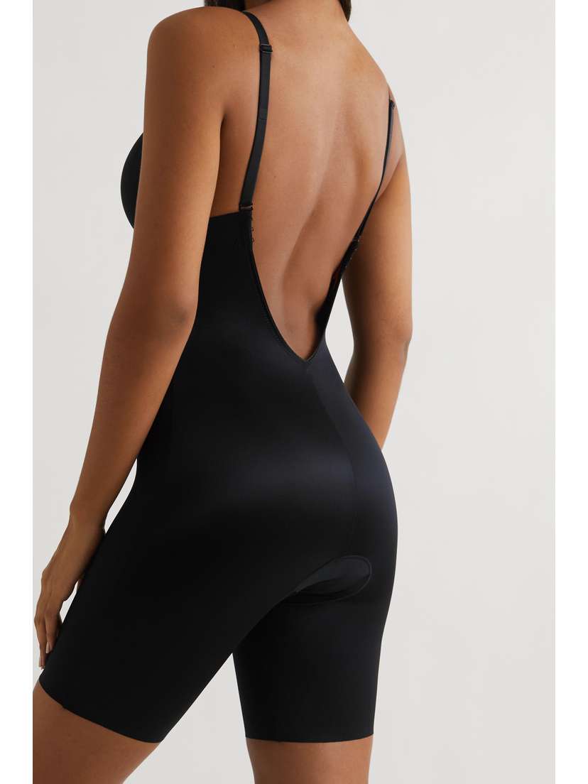 Бренд: Spanx Цвет: черный Боди Spanx изготовлено из дышащего и легкого эластичного трикотажа, разработанного экспертами для визуального моделирования и сглаживания изгибов вашей фигуры. Эта бесшовная модель имеет формованные чашечки для поддержки, глубокий вырез и регулируемую спинку, благодаря чему боди остается незаметным под облегающими платьями. Отрегулируйте бретели для идеальной посадки.