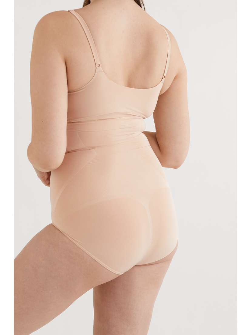 Бренд: Spanx Цвет: бежевый Утягивающие трусики-слипы Oncore от Spanx подарят вам ощущение комфорта и уверенности в себе (и в вашем любимом маленьком черном черном платье). Легкие и удобные, эти трусики с высокой посадкой оснащены проклеенными вставками, которые сглаживают изгибы живота и бедер, а внутренние прорезиненные полоски предотвращают сползание и заломы. Бежевый оттенок идеально подходит в качестве подкладки под легкую одежду.