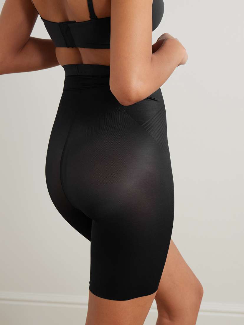 Шорты Spanx с высокой талией «Thinstincts 2.0» изготовлены из легкой микрофибры, что делает их практически незаметными под самыми облегающими платьями и брюками. Они разработаны с использованием стратегически расположенных усиленных вставок, которые сглаживают и корректируют фигуру, а также с хлопковой ластовицей для комфорта.