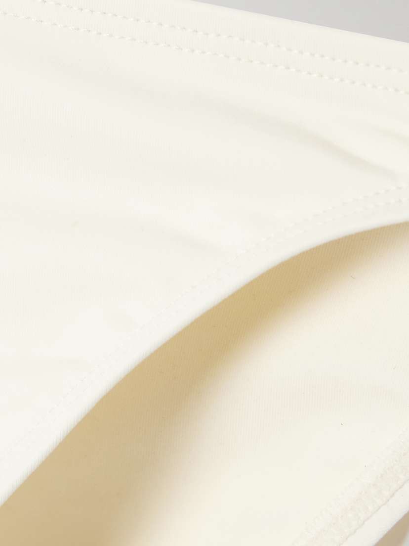 Эластичный переработанный нейлон кремового цвета.
