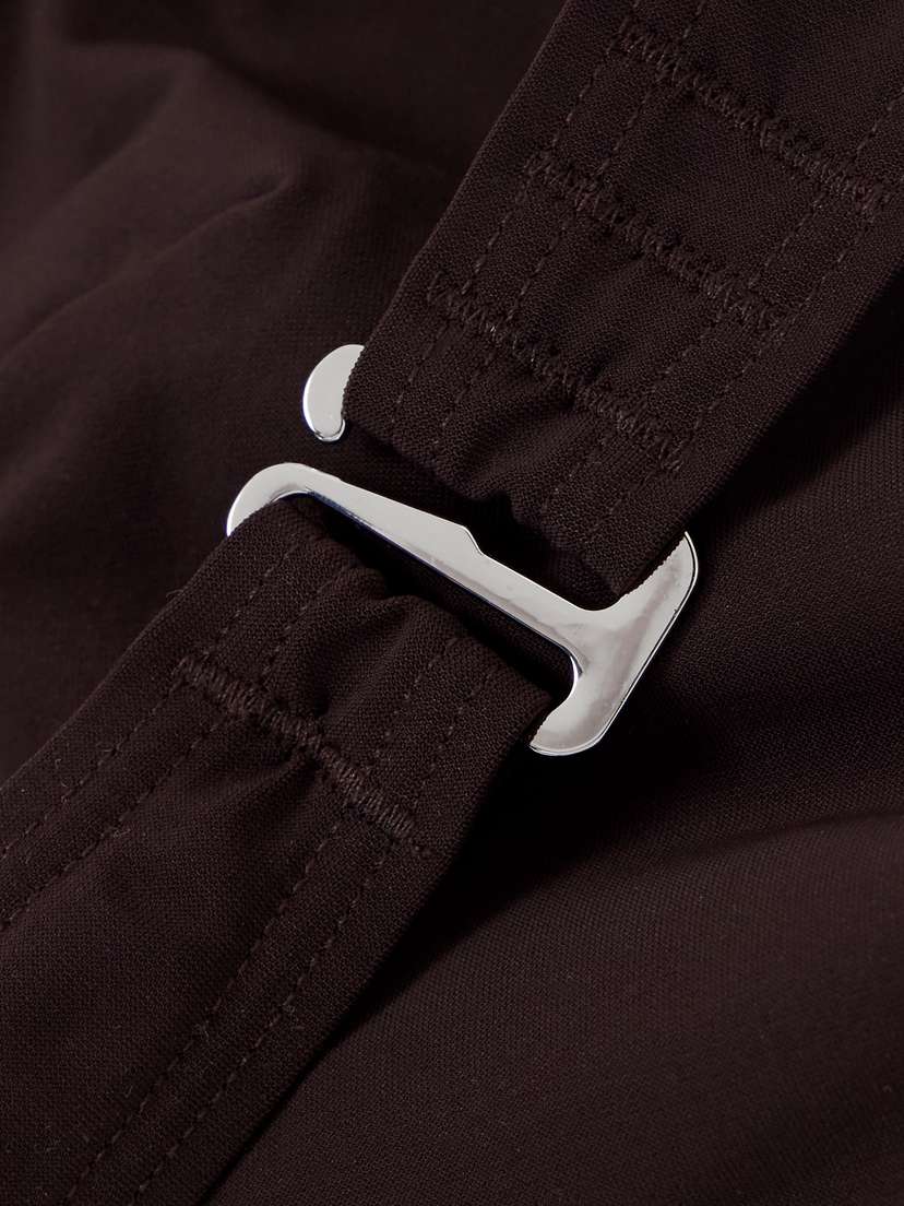 Эластичный переработанный нейлон насыщенного шоколадного цвета.