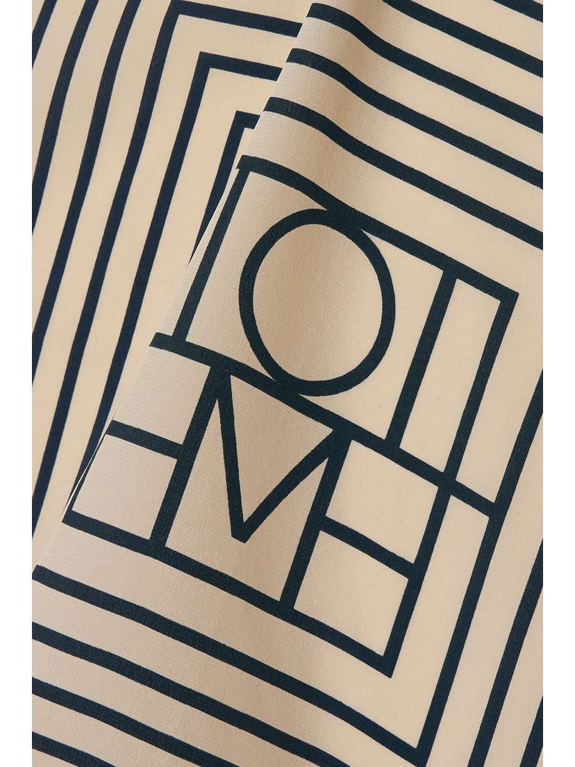 Полосатый шелковый крепдешиновый шарф Toteme, бежевый