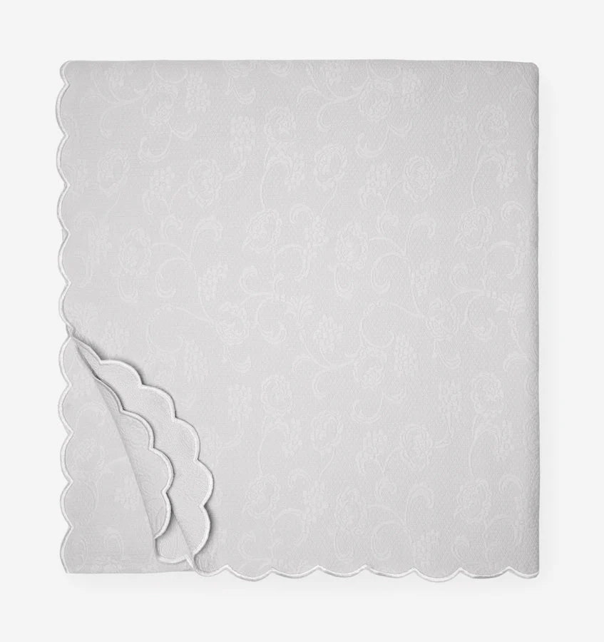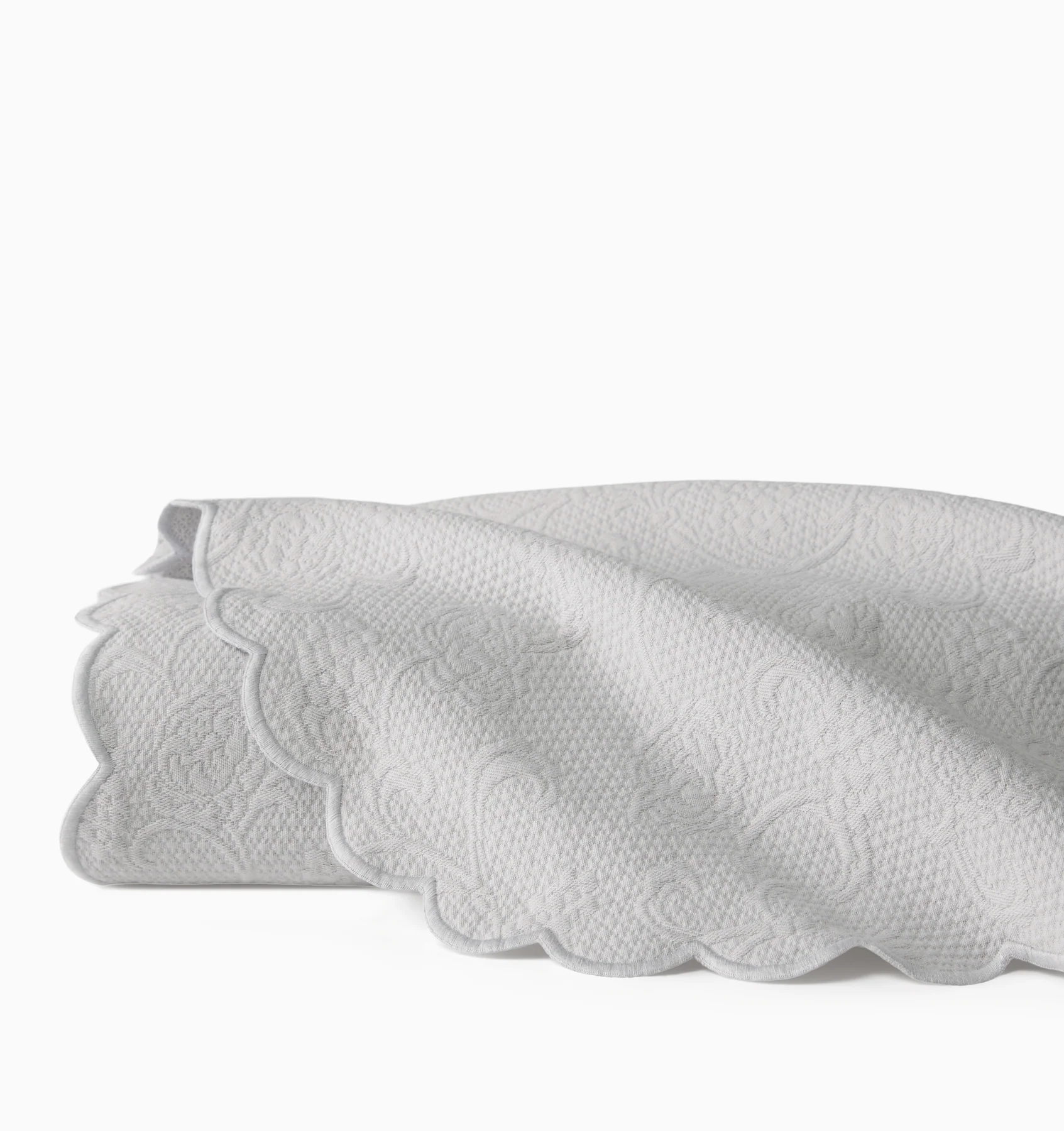 В классической традиции мателассе тонкий рельефный узор цветов и виноградных лоз на фоне текстурированной ткани, все из мягкого длинноволокнистого хлопка. Зубчатые края обрамляют покрывала и наволочки.