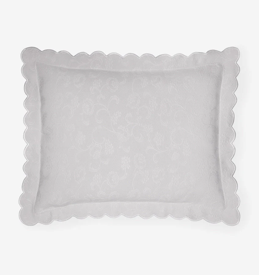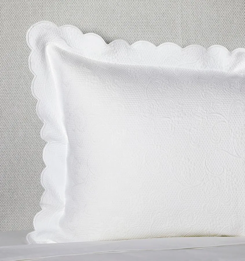 В классической традиции мателассе тонкий рельефный узор цветов и вин покрывает текстурированный фон, все сделано из мягкого длинноволокнистого хлопка. Волнистые края завершают покрывала и наволочки.