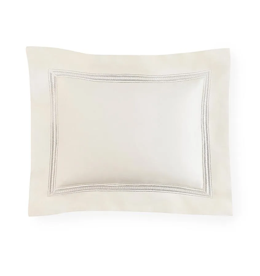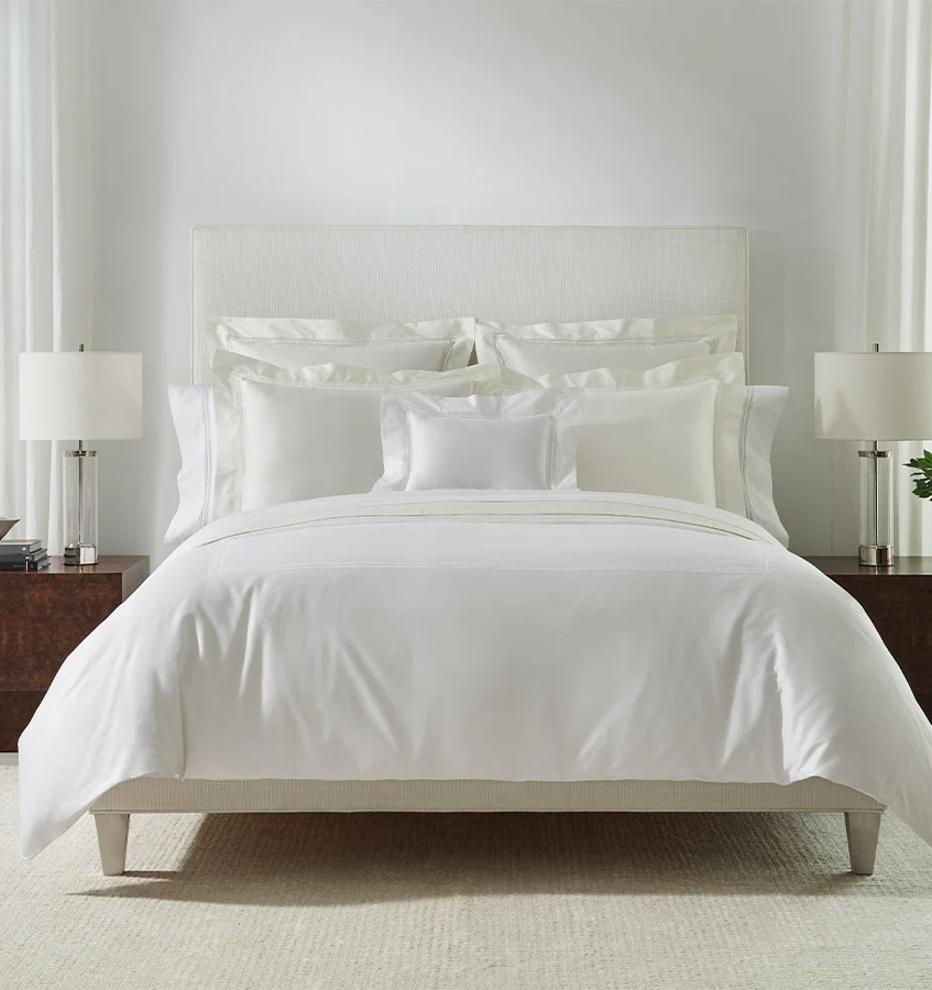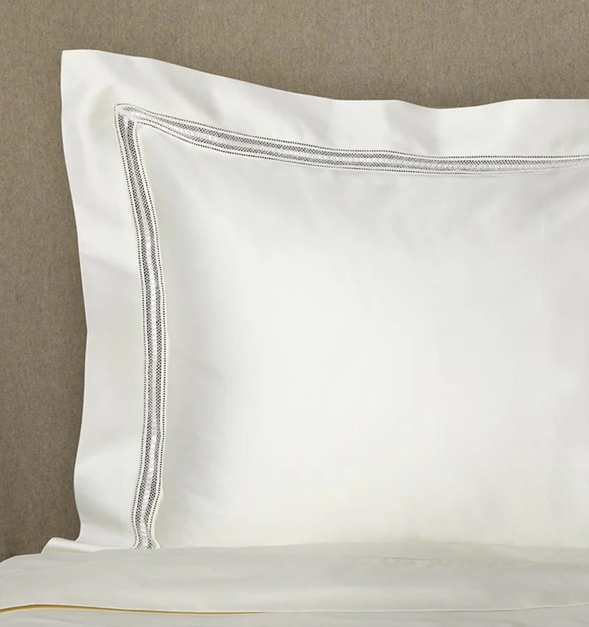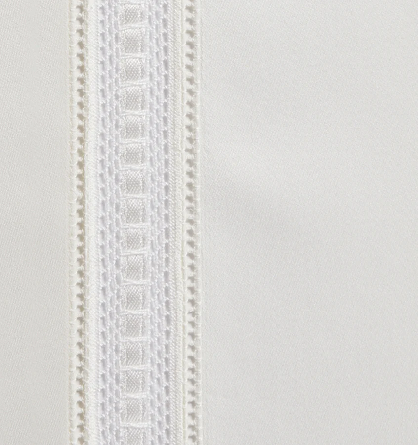 Наш роскошный гладкий сатин, Giotto, является основой для нашего ансамбля с кружевными украшениями, Diamante, где макраме-кружево вставлено по центру и обшито узкой атласной лентой. Чтобы добавить завершающий блеск и патину, кружево проложено с обеих сторон нежной вышивкой, создавая прекрасно утонченную и элегантную постель.