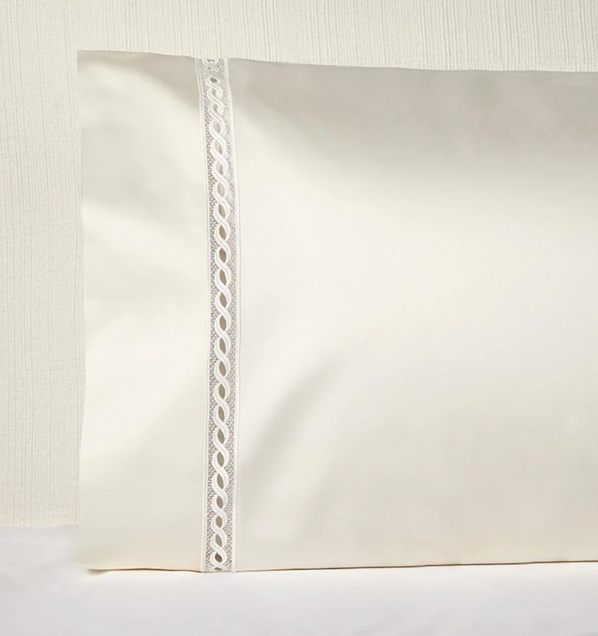 Millesimo блестит как одно из самых любимых экстравагантных изделий наших клиентов: он плотно переплетен в насыщенный, полированный сатин, который одновременно мягкий, сверкающий и нежный. Итальянская кружевная вставка с классическим цепным мотивом придает именно тот необходимый штрих деталей для непревзойденного Ne Plus Ultra постельного белья.