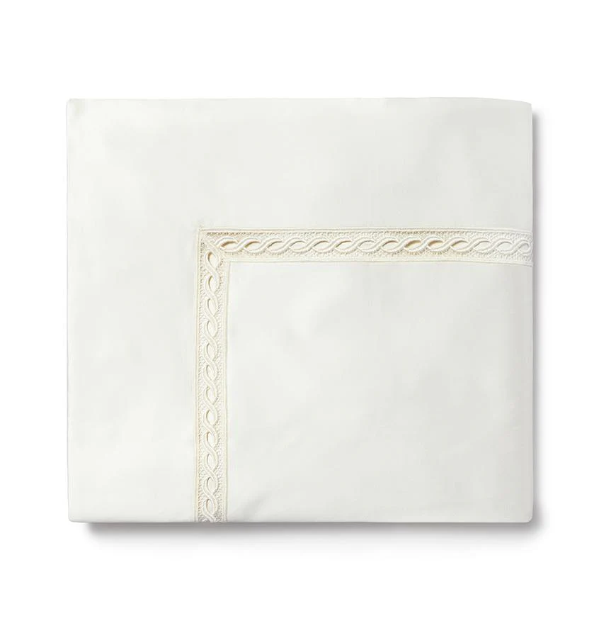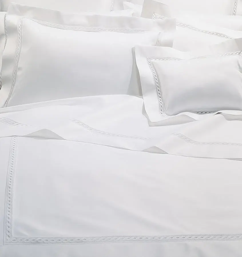 Millesimo блестит как одна из самых любимых экстравагантностей наших клиентов: он густо переплетен в богатый, полированный сатин, который одновременно является эластичным, сияющим и мягким. Вставка из итальянского кружева с классическим цепочным мотивом придает нужный штрих для непревзойденного Ne Plus Ultra постельного белья.