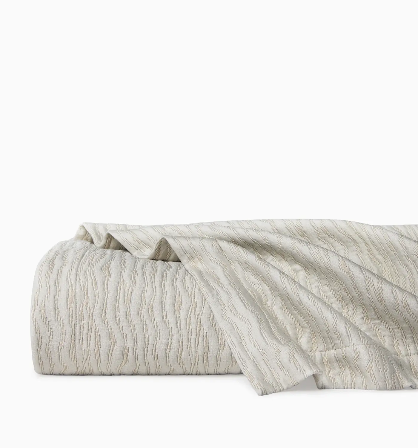 Вдохновленная пейзажами колышущихся песчаных дюн, Ondate выполнена в ткани с двумя оттенками пряжи, напоминающей волнистые рябь. Текстурная и гладкая, обратимая накидка имеет нежную и мягкую палитру, являясь поразительным произведением exquisitного искусства.