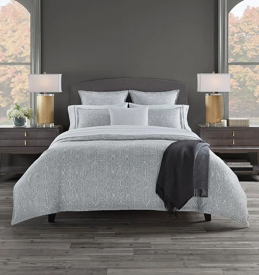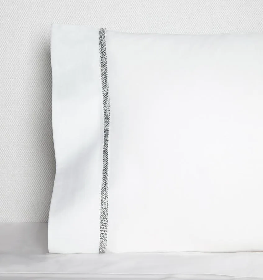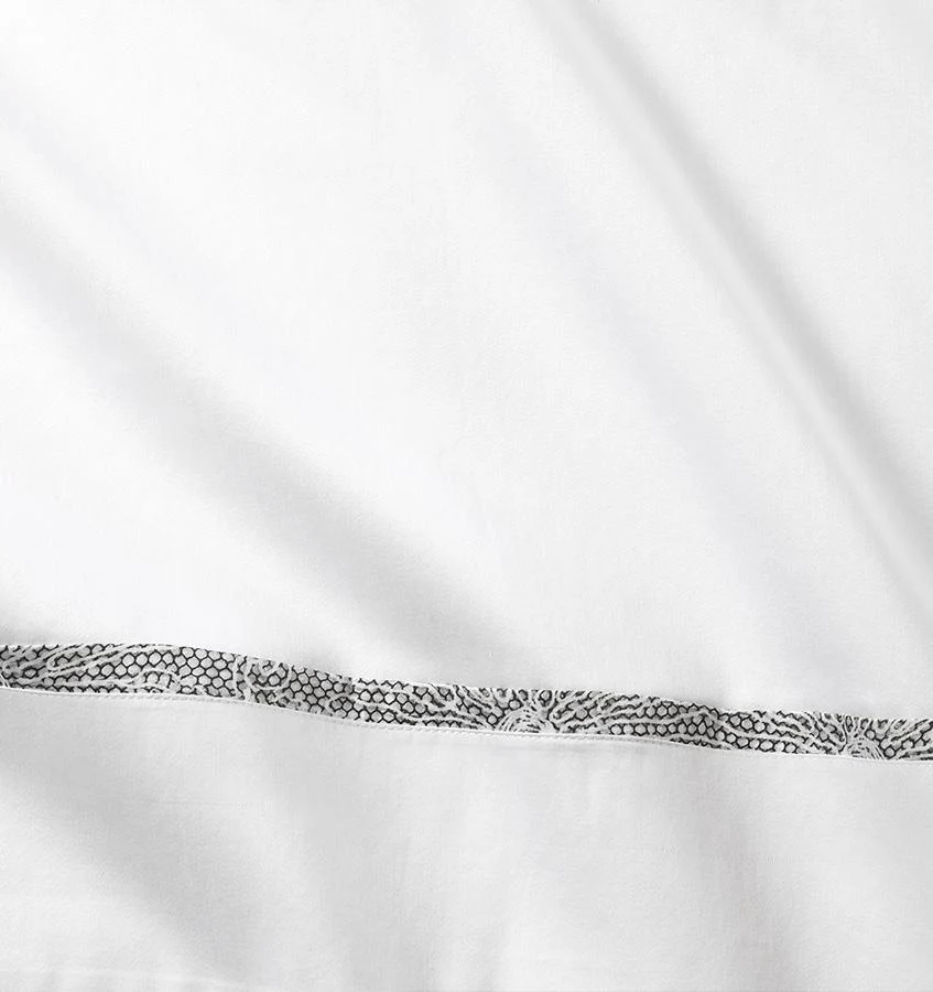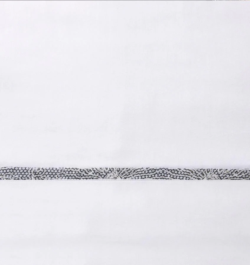 Отражая наше богатое наследие кружевных приложений, Эмилия украшена изысканным кружевным узором в мягких слоновый и черный тонах. Сетчатый кружевной узор создает нежный мираж красоты. Коллекция включает в себя пододеяльник и наволочки с общим принтом, в то время как наволочки и простыня имеют аппликационную окантовку, чтобы создать гармоничный образ.