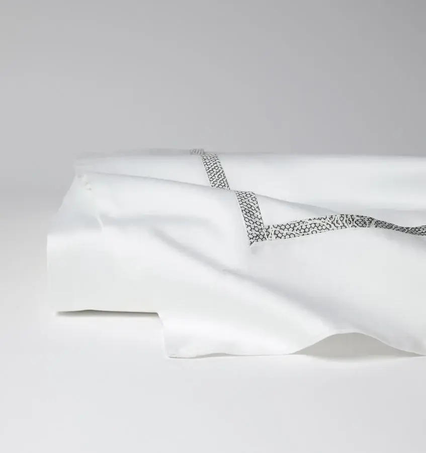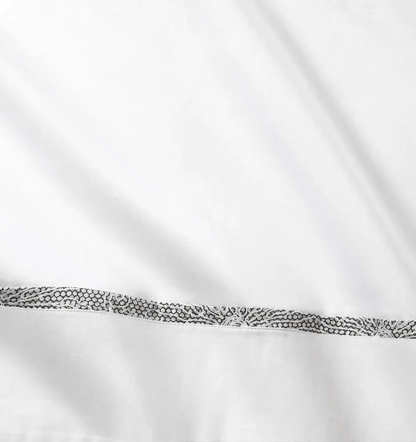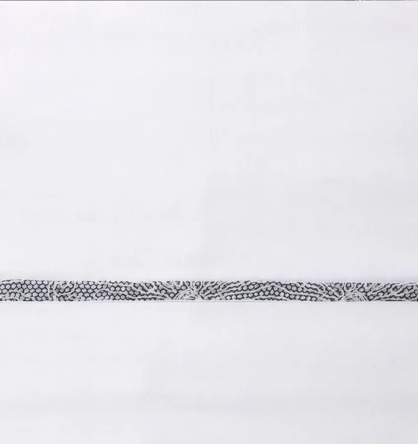 Отражая наше богатое наследие оборок, Эмилия напечатана с изысканным кружевным узором в мягких слоновой кости и черных тонах. Сетчатый кружевной узор создает нежное видение красоты. Коллекция включает в себя пододеяльник и наволочки с принтом по всей поверхности, в то время как наволочки и верхняя простыня имеют аппликационную отделку для согласования внешнего вида.