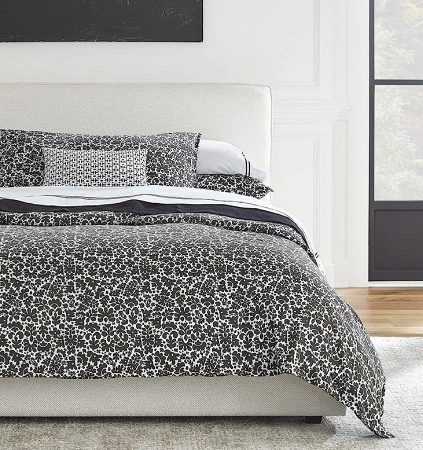 Преобразуя кровать в современный шедевр, итальянский Nori - выполненный из блестящего хлопкового сатина - черпает вдохновение из архивных коллекций французских произведений искусства середины 20 века, вводя современные формы в классическую композицию для свежего взгляда на элегантность.