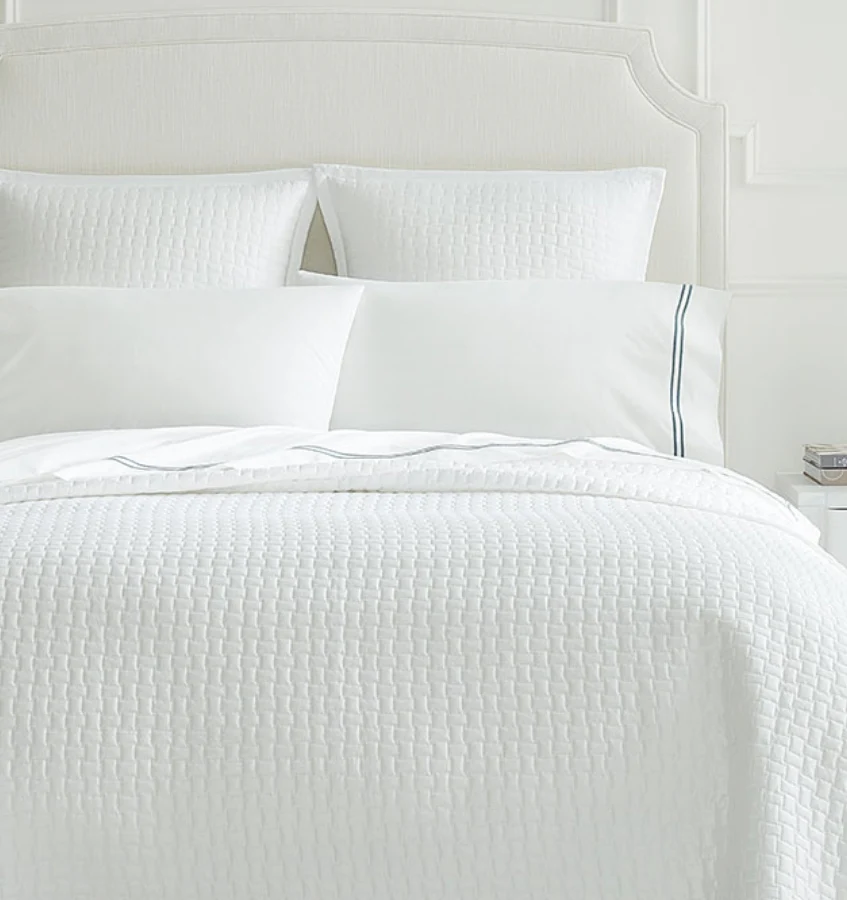 Комбинируя сдержанную простоту с чистой роскошью, наш сатиновый хлопковый покрывало Sampietrini - это квилтированная мечта, придающая тепло и визуальную глубину кровати.