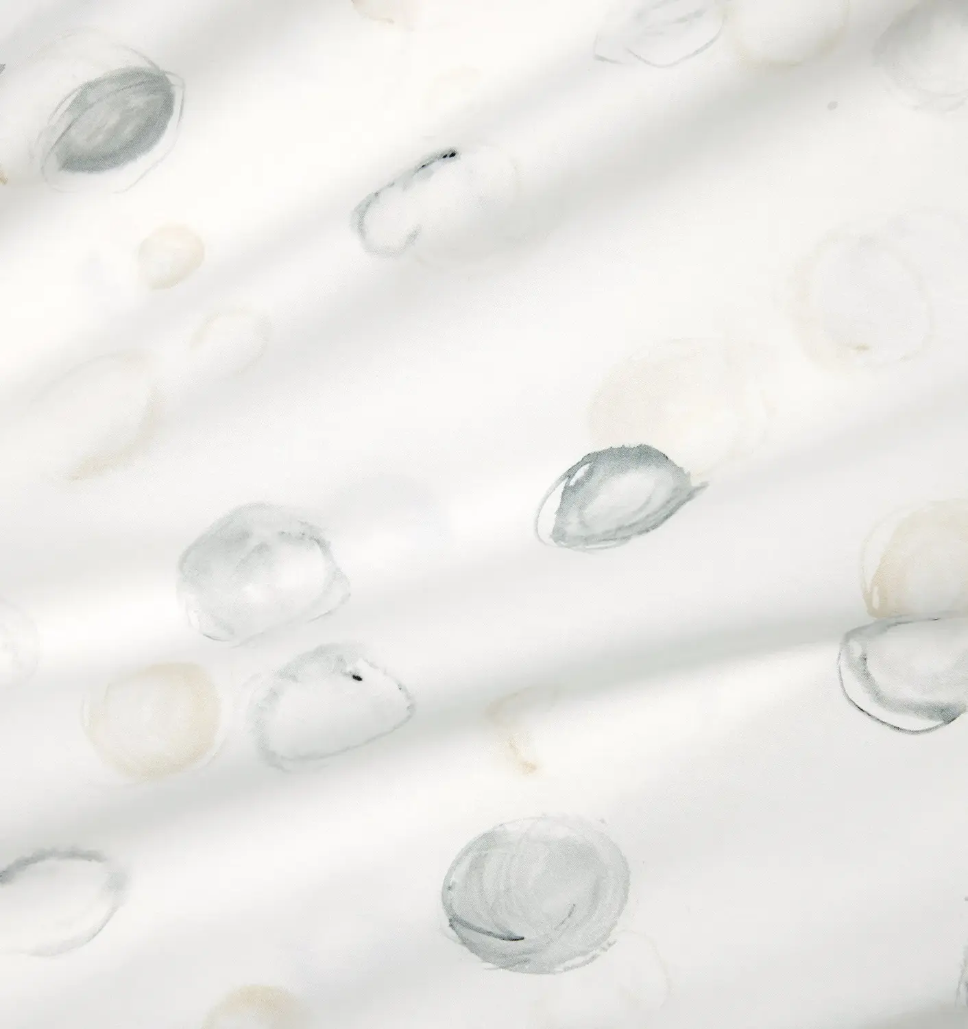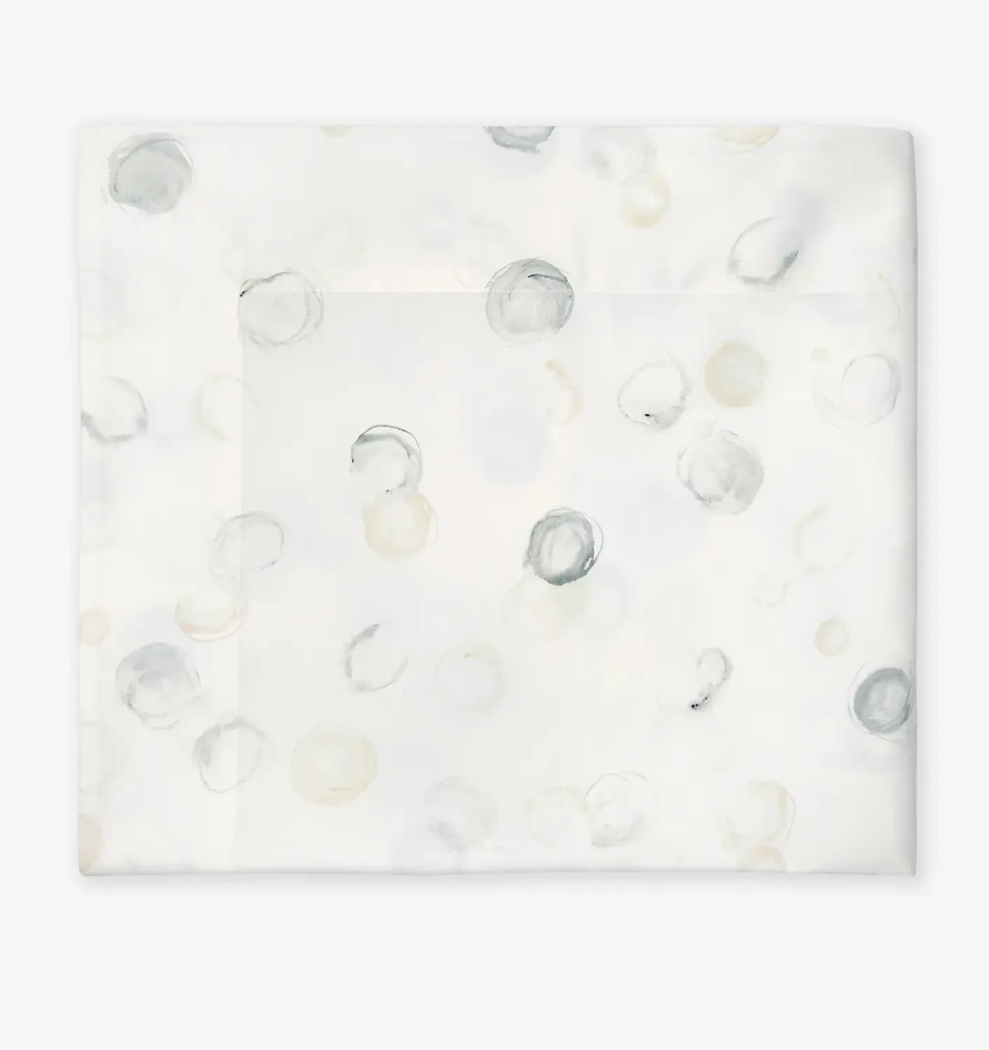 Оттенки серого и таупа, нанесенные кистью, создают общий узор на мягкой и воздухопроницаемой основе перкаля Punti. Сопутствующая коллекция вышитых элементов Squillo связывается вместе двумя линиями серого и таупа, которые образуют причудливые петли, танцующие по всем четырем сторонам. Вместе эти коллекции добавляют игривую современность классическому горошку, поднимая уровень спальни и наполняя ее сдержанной живостью.