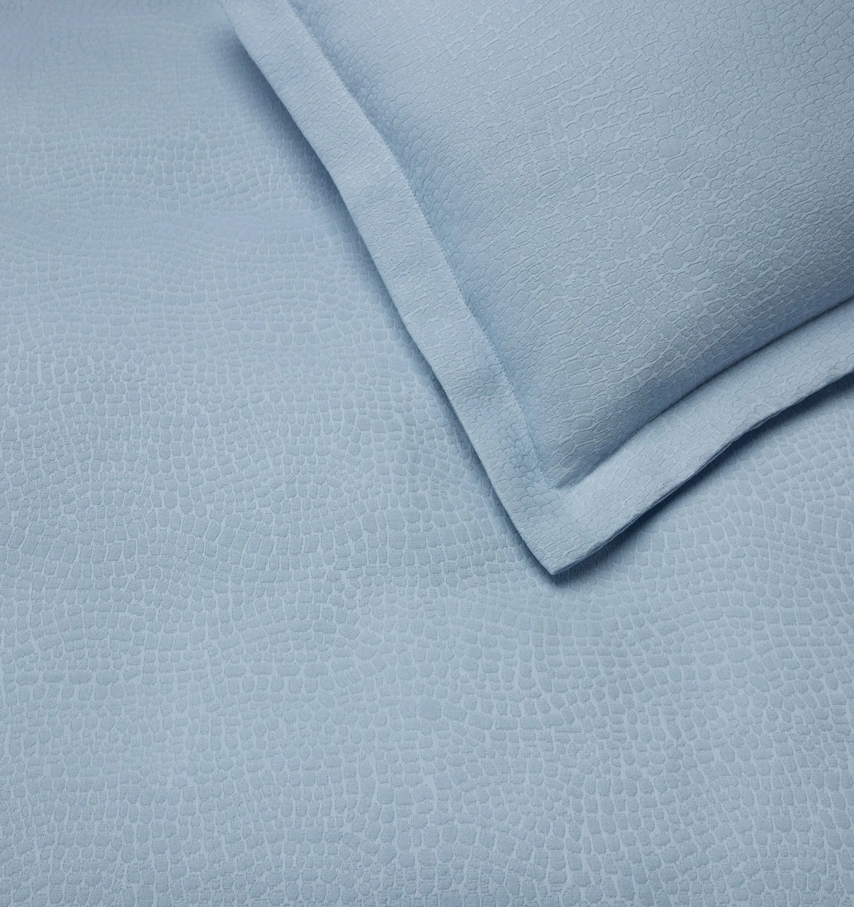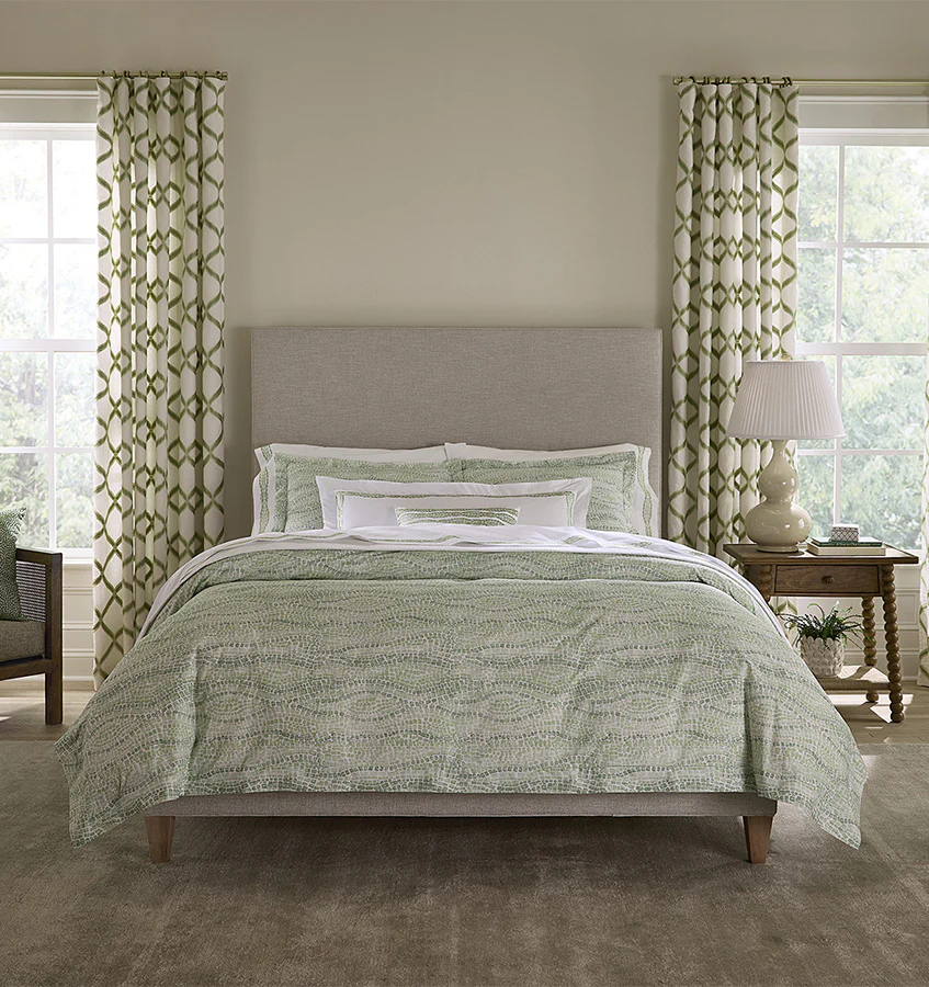 Созданная в Португалии из чистого хлопка длинного волокна, коллекция Cobblestones от SFERRA x Scalamandré была вдохновлена греческим городом Мистрас с его живописными булыжниками. Общий жаккардовый мозаичный узор течет как ритмичный мотив, создавая спокойный, но динамичный холст, который превращает кровать в произведение искусства.