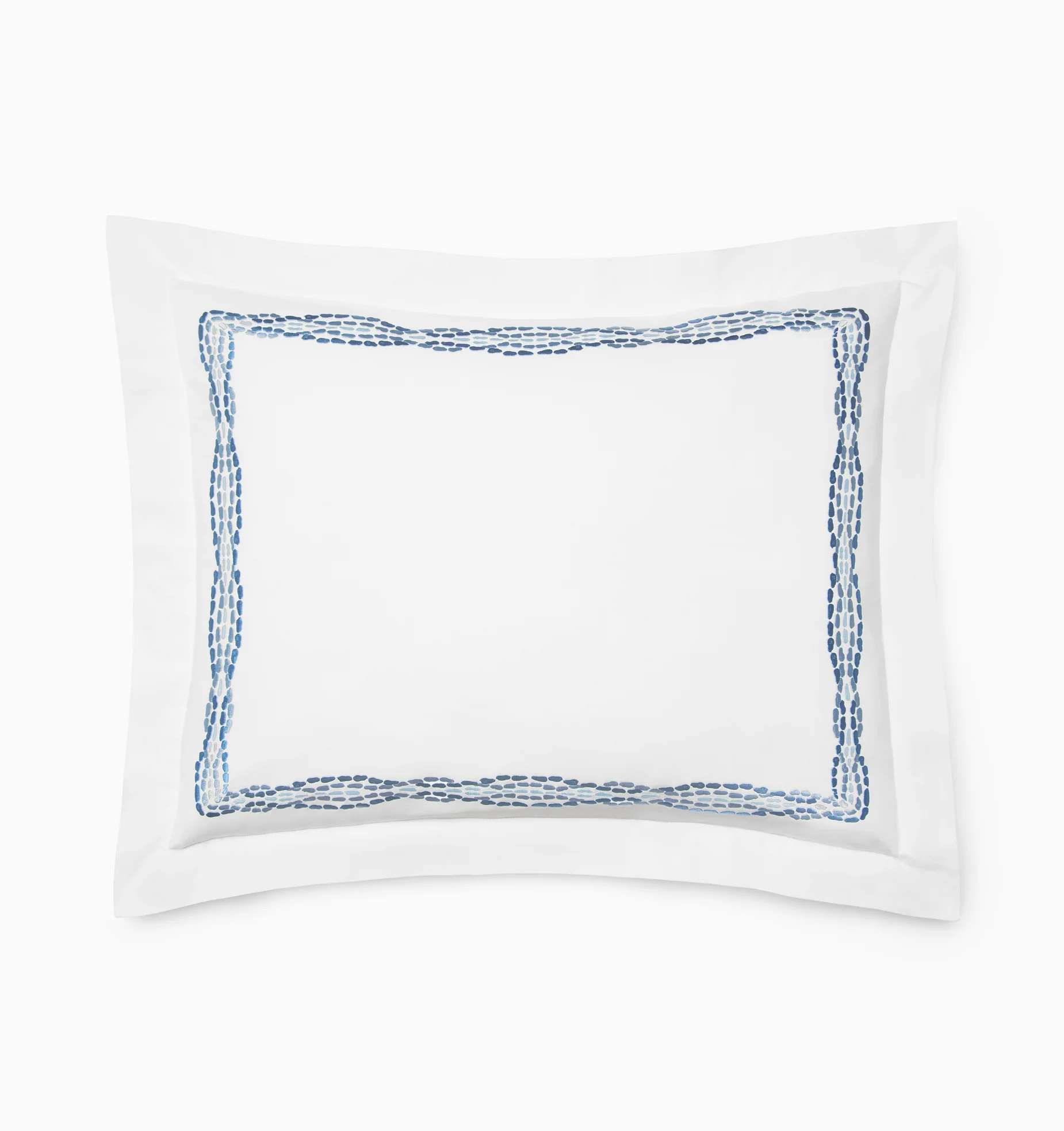 Созданная в Португалии из чистого хлопка длинного волокна, коллекция Cobblestones от SFERRA x Scalamandré была вдохновлена греческим городом Мистрас с его живописными булыжниками. Общий жаккардовый мозаичный узор течет как ритмичный мотив, создавая спокойный, но динамичный холст, который превращает кровать в произведение искусства.