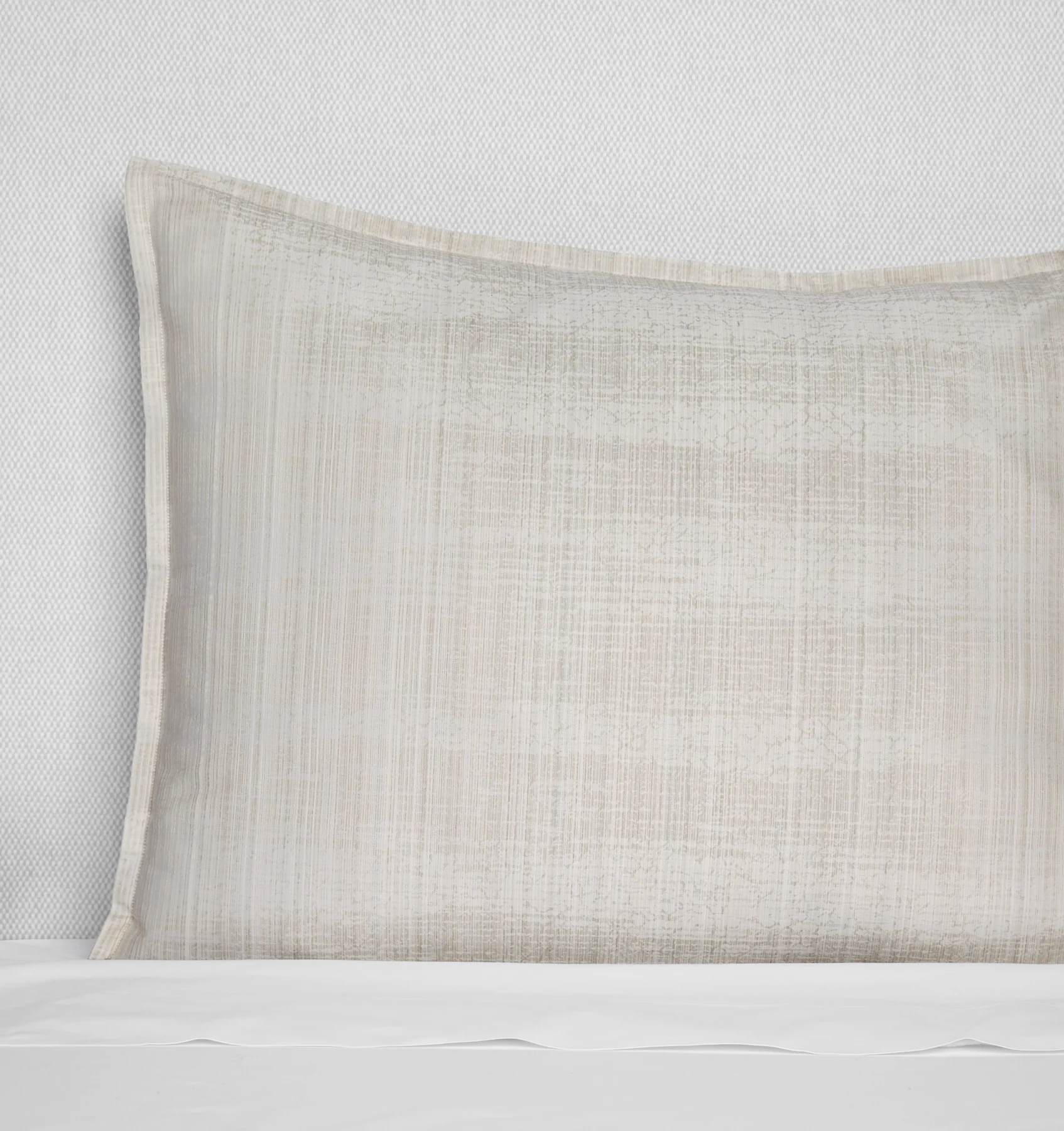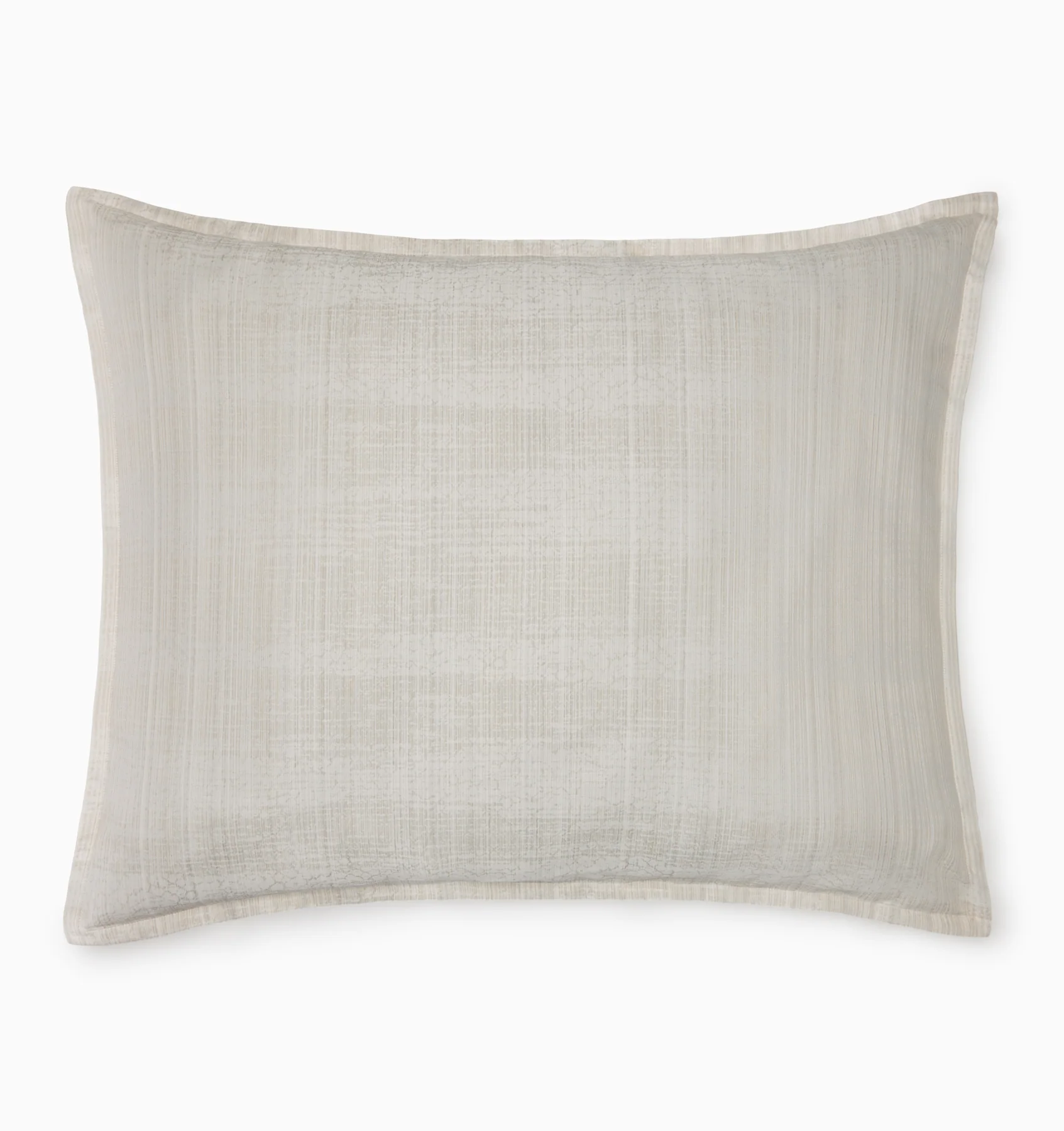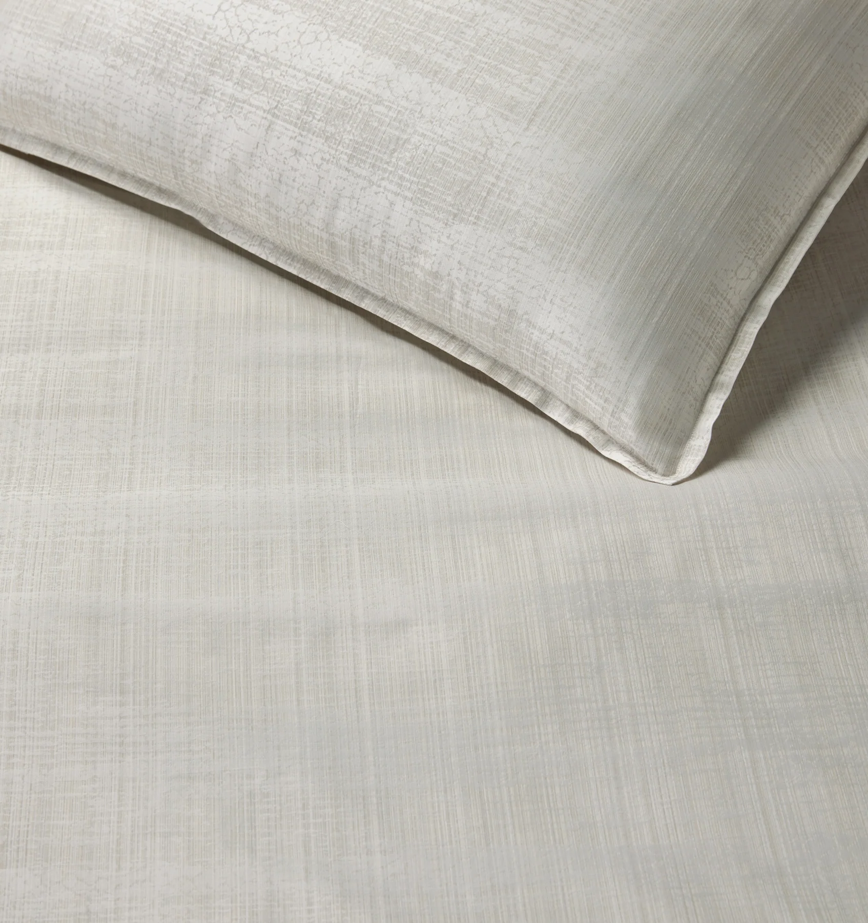 Домашний уют, окутанный легкостью пляжного отдыха. Gianna - это блестящий сатиновый жаккард, сотканный из итальянского длинноволокнистого хлопка, его бежевый оттенок вызывает безмятежность песчаного отдыха на море. Вдохновленная легкостью тропических уединений, его тканая текстура имитирует нежную красоту ротанга, создавая ощущение легкости и непринужденной роскоши.