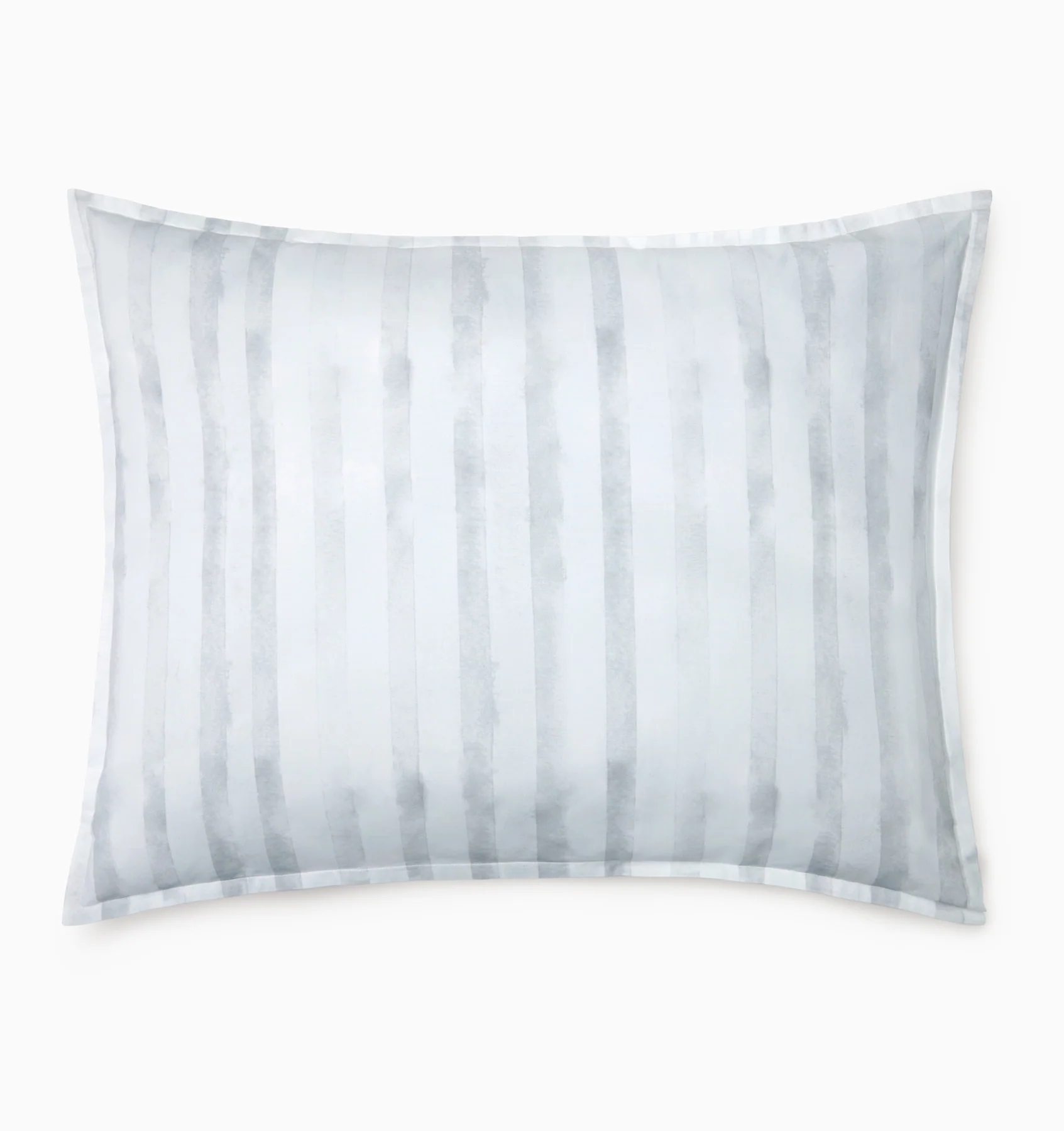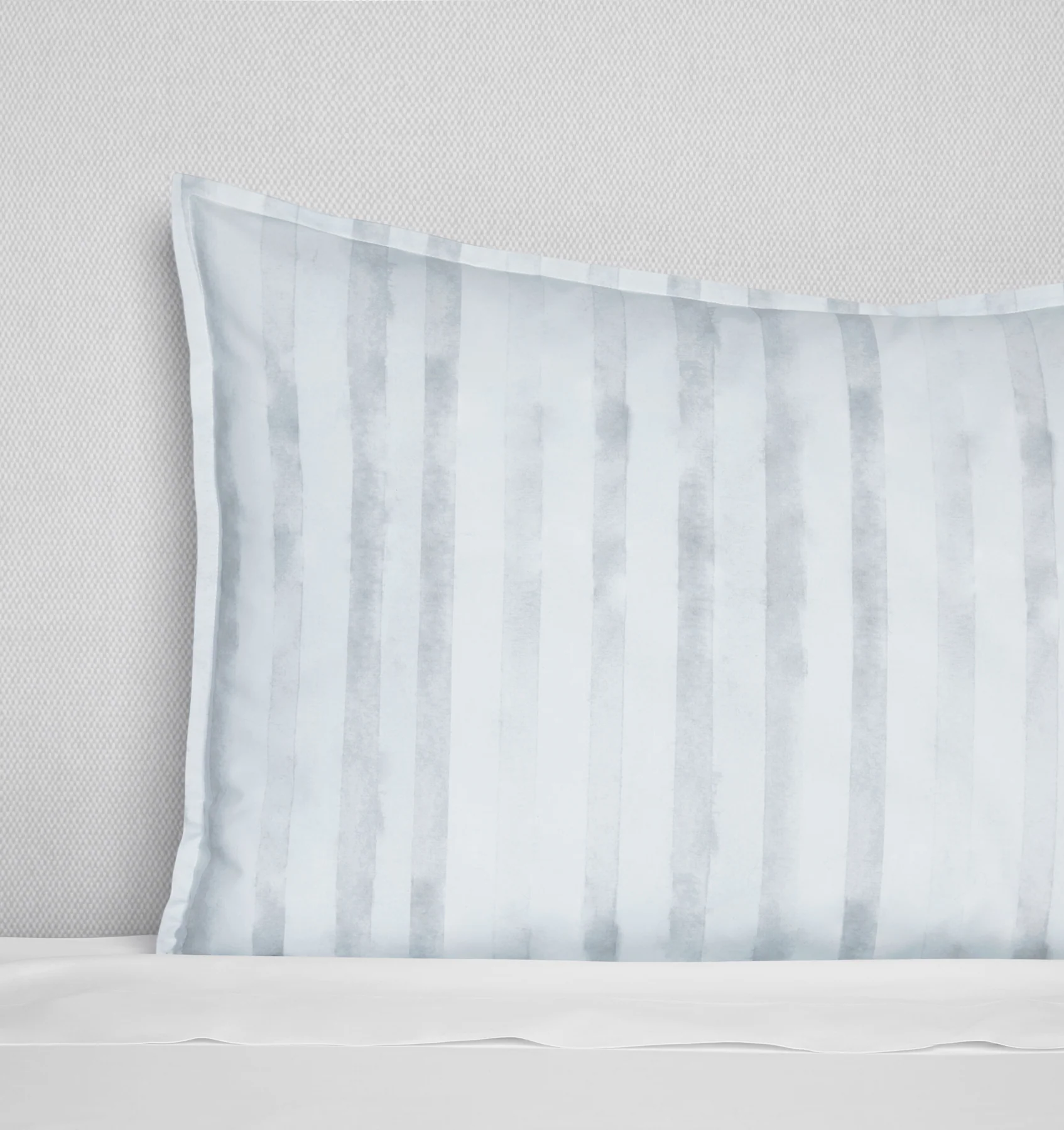 По всему периметру ткань Криции выполнена в виде выцветших акварельных полос, что подчеркивает мягкое, солнечное очарование тканей домиков на пляже. В лунной палитре серо-голубого цвета каждая тонкая линия течет с художественной грацией, в то время как мини-ободки добавляют утонченности этой спокойной, словно во сне, постельной одежде.