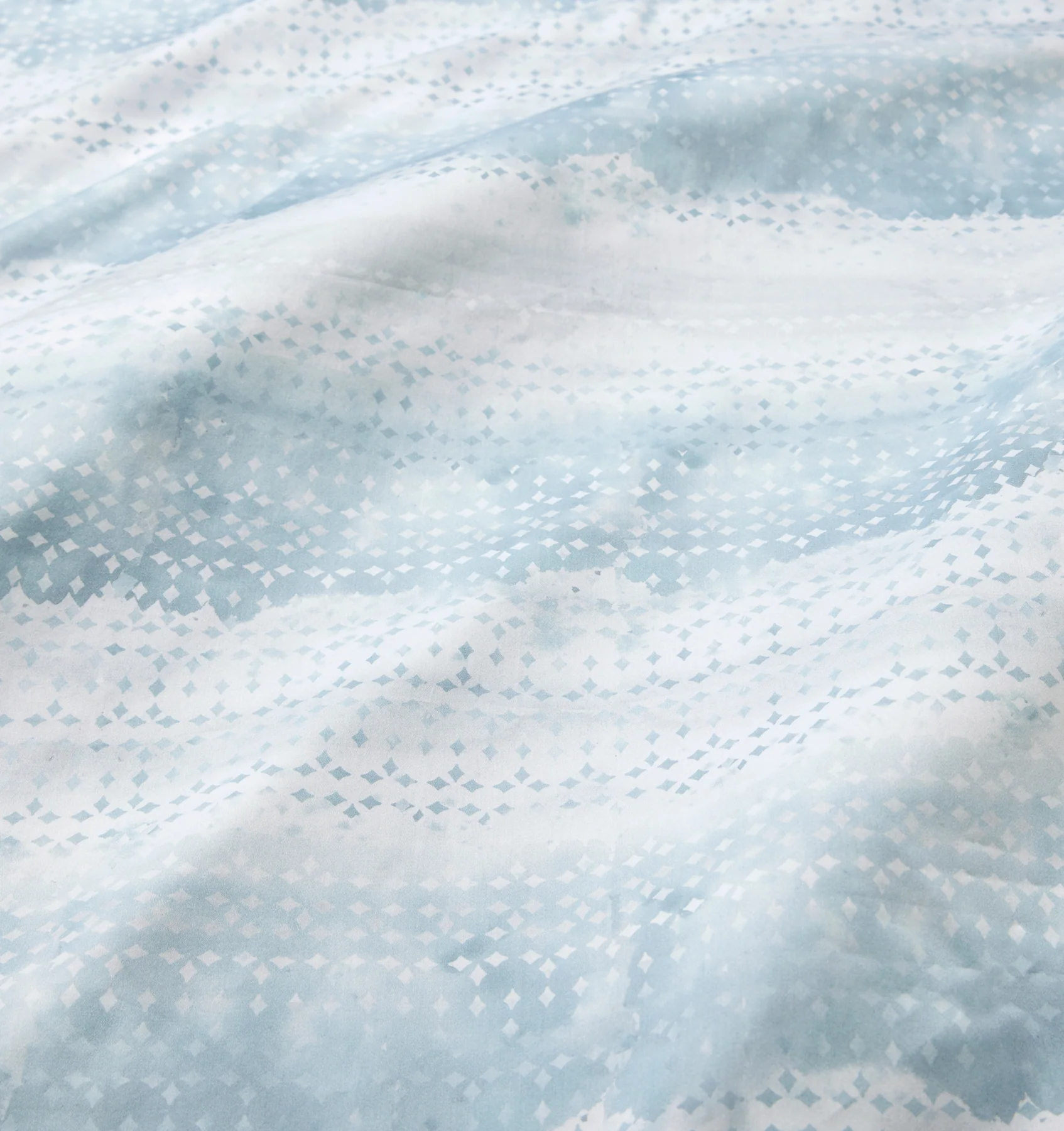 Напечатанный на чистом хлопковом сатине в Италии, Brillanti предлагает мягкую, светящуюся поверхность, которая ощущается так же плавно, как и выглядит. Его печатный дизайн светится в тонах небесно-голубого, с ритмичным узором, который течет по ткани, как свет, отраженный на воде. Мини-края придают легкую структуру, в то время как простые подгибы позволяют тонкому движению мотива оставаться непрерывным. Brillanti приносит чувство спокойствия и простора в постель-прохладное, воздушное и тихо сияющее.