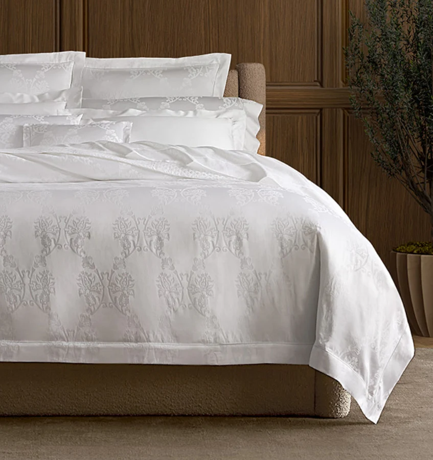 SFERRA Giza 45 Lido захватывает атмосферу тихого величия. Изготавливается в Италии из самого редкого египетского хлопка Giza 45, его сатиновая гладкая поверхность демонстрирует изящный жаккардовый мотив - цветущий узор, который появляется, когда свет меняется на ткани. Чистый белый цвет позволяет мастерству говорить за себя, обрамленный вышивкой по краям и тщательно скроенными бортиками.