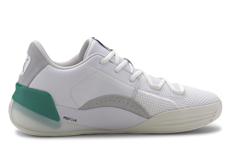 Используя популярный сегодня дизайн вязаных носков, модель оснащена новой системой шнуровки для поддержки, а кожаные вставки по бокам и на пятке укрепляют верхнюю часть и усиливают защиту. Мидсоль Puma Clyde Court Disrupt сочетает амортизирующие гранулы NRGY и пену Ignite, обеспечивая относительно жесткое, но очень отзывчивое ощущение при ходьбе.