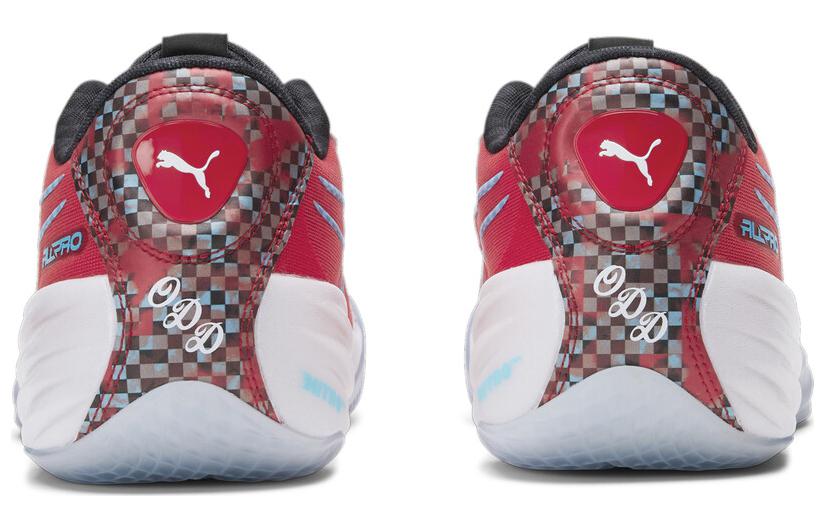 Вся обувь выполнена в крупных красных акцентах с синим логотипом PUMA, что создает впечатляющий визуальный эффект. Верхняя часть изготовлена из различных текстильных материалов, обеспечивая прочную поддержку и хорошую воздухопроницаемость. На языке кроссовка нанесена надпись ODD, что означает девиз Overly Determine to Dominate, подчеркивая уникальность модели. Мидсоль оснащена технологией NITRO foam, предоставляя спортсменам превосходную амортизацию и стабильность.