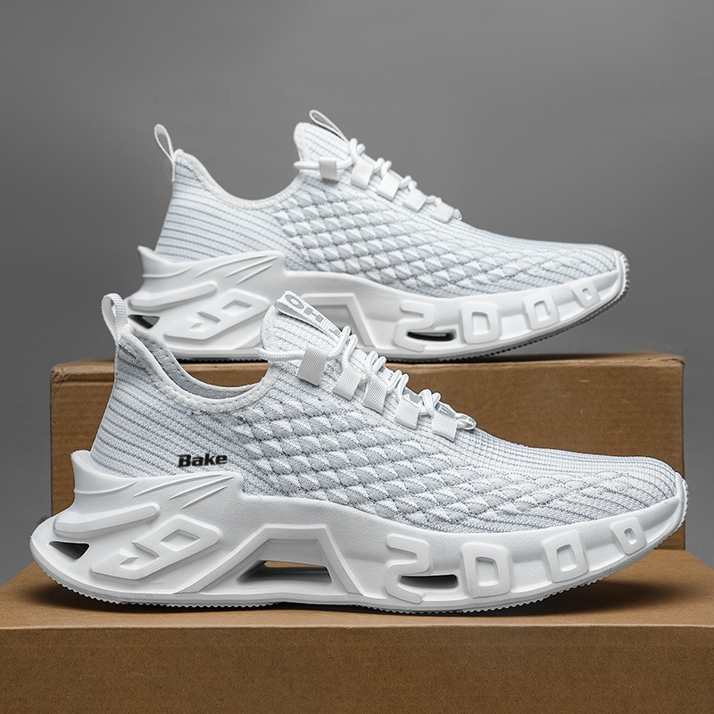 BAKE Амортизирующие дышащие эластичные низкие кеды унисекс белые, цвет White