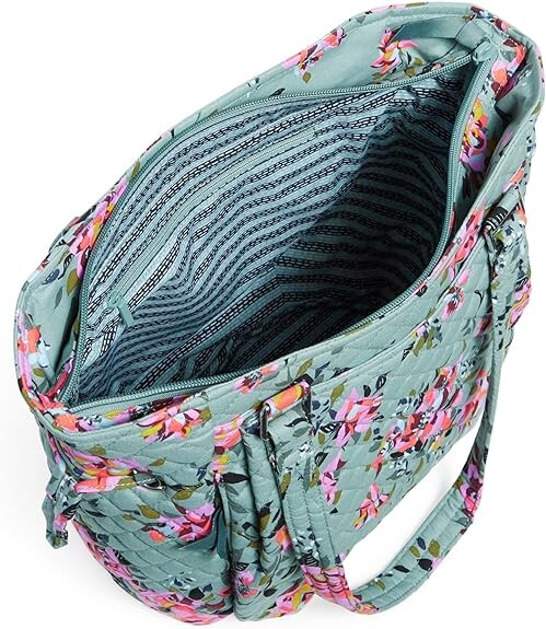 Фирменный хлопок яркий и легкий. Снаружи имеется потайная молния и 2 накладных кармана. Внутри 3 накладки и карман на молнии. Шнурок для регулировки размера сумки. Застежка-молния. Машинная стирка в холодной воде в деликатном режиме. При необходимости используйте отбеливатель без хлора, сушите на веревке. Вера Брэдли создаст вашу новую любимую сумочку — ищете ли вы сумку через плечо, сумку, браслет, хобо или клатч — мы удовлетворим все ваши потребности в сумке, включая карманы и органайзер для телефона и других ценных вещей.