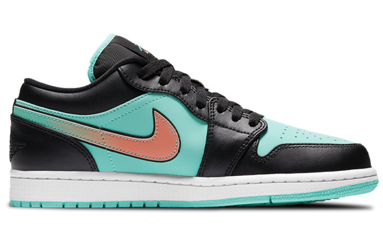 Air Jordan 1 Low SE "Tropical Twist" выполнен на бирюзовой кожаной основе с черными накладками, на боковой части присутствует градиентный логотип Swoosh. Дизайн завершает белая промежуточная подошва на бирюзовой резиновой подметке.