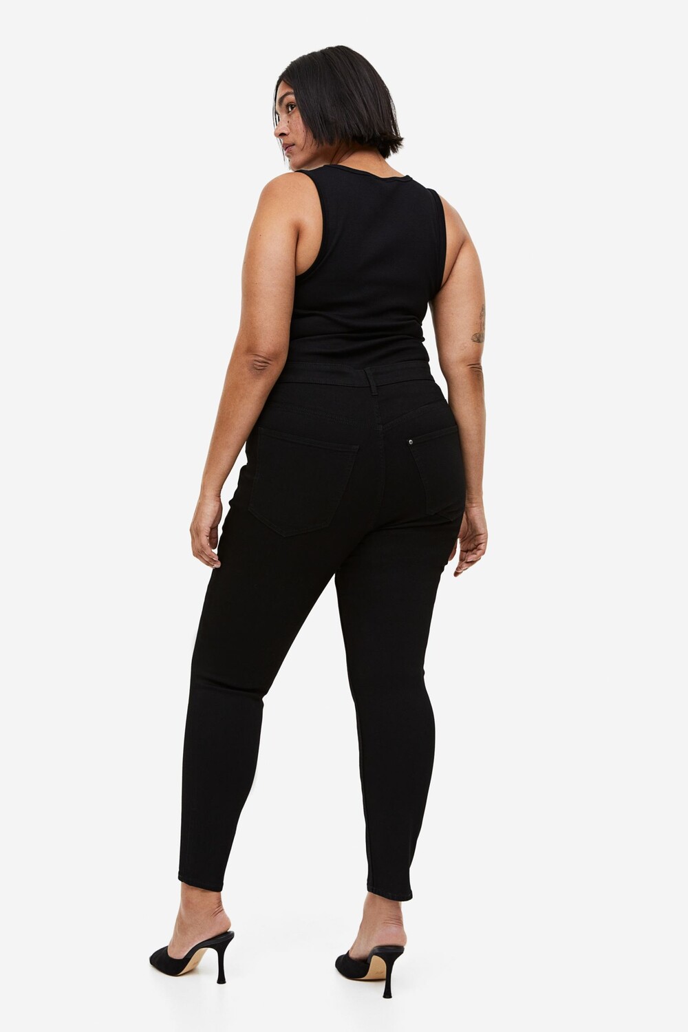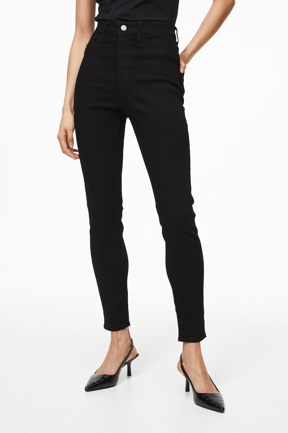 Джеггинсы из ткани с высокой эластичностью приталенного силуэта подчеркивают фигуру. Высокая талия, ширинка на молнии и пуговицах, ложные карманы спереди, настоящие карманы сзади.