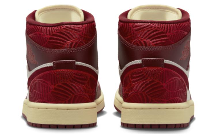 Эта модель Air Jordan 1 средней высоты изготовлена из комбинации замши и тисненой кожи, с выразительной вышивкой Swoosh на боковой части. Другие примечательные детали включают накладку на пятке и вышивку в виде листьев на воротнике, создающую атмосферу тики. Дизайн завершается Sail-подошвой на красной резиновой наружной подошве.
