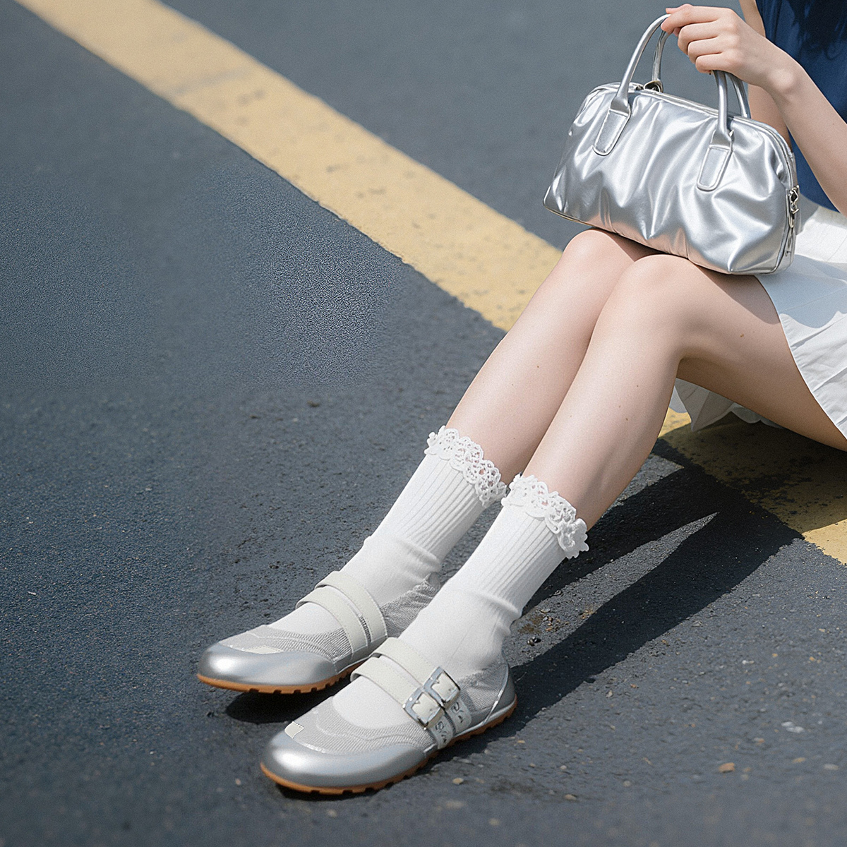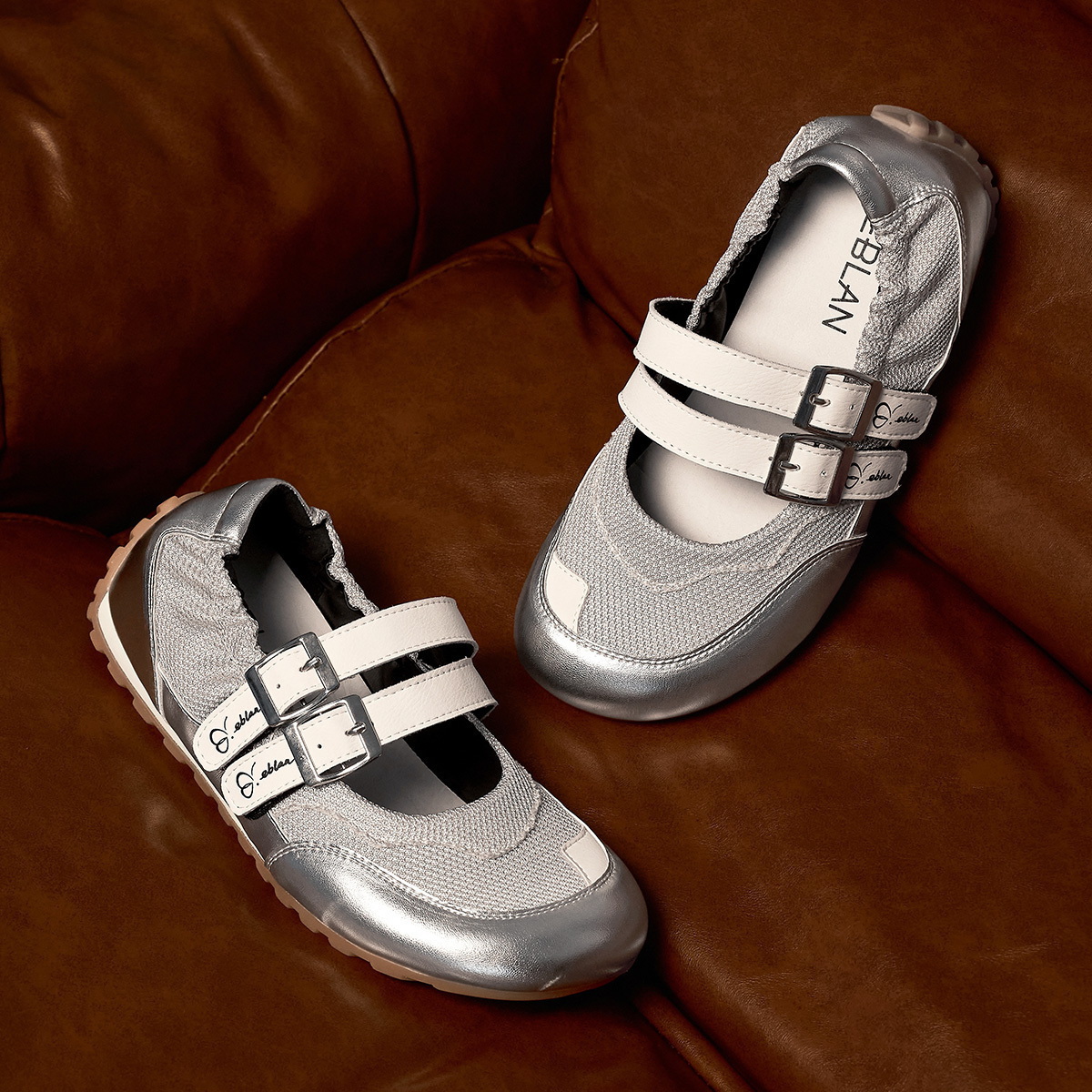 EBLAN Серебряные балетки Мэри Джейн, цвет Silver