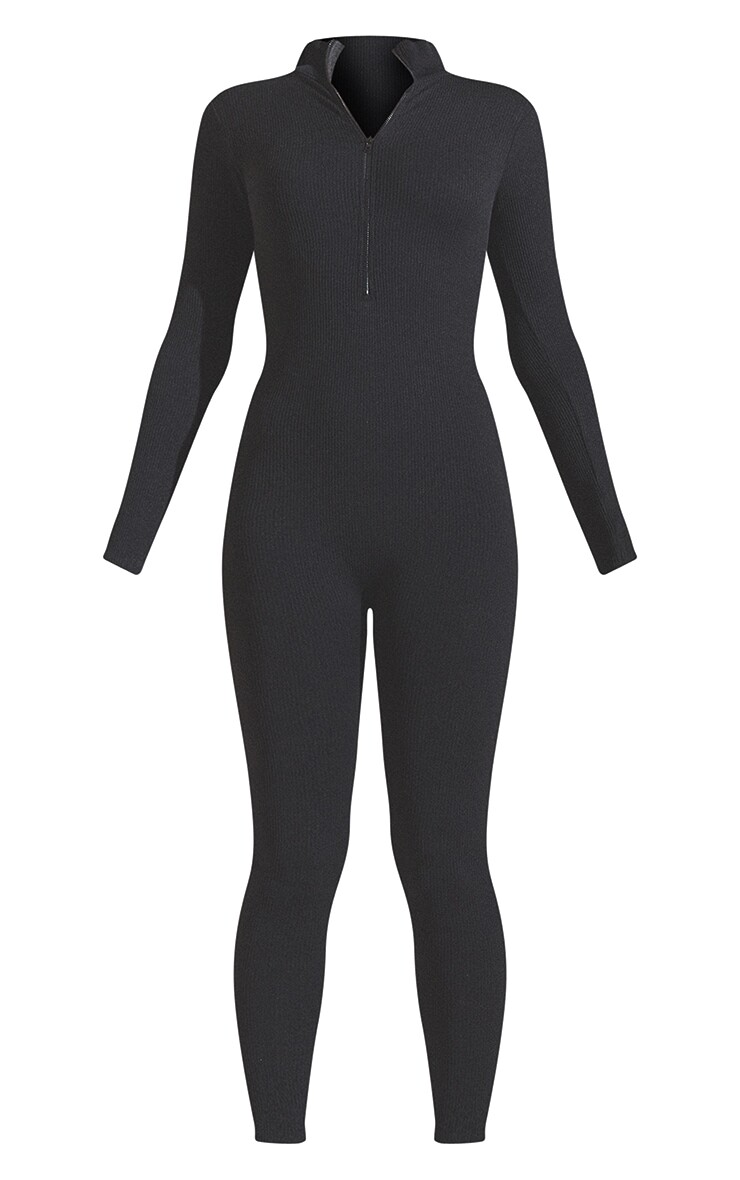 PrettyLittleThing Черный структурированный комбинезон с молнией в рубчик