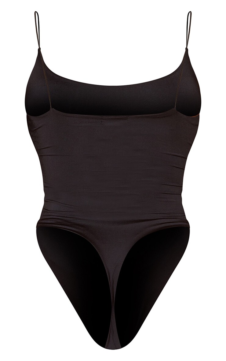 Это боди наверняка станет неотъемлемой частью вашего кукольного гардероба в новом сезоне. Модель из черного облегающего материала с бретельками-спагетти облегает фигуру. Сочетайте с синими джинсами и туфлями на каблуке, чтобы создать простой, но шикарный образ.