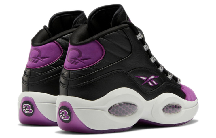 Эта пара обуви Reebok Question Mid под названием «Black Magenta» привносит в преимущественно белую коллекцию свежий и смелый дизайн, одновременно интегрируя элегантную отделку. Здесь мы видим кремово-черный кожаный верх с плюшевыми замшевыми мыском и задником фиолетово-пурпурного оттенка, причем последние украшены тисненым брендингом, что многократно усиливает элегантность этой модели. Яркая белая подошва контрастирует с насыщенными тонами верха, а дополнительные оттенки гармонично сочетаются с оставшимися элементами брендинга. Затем обувь оснащена черными и пурпурными амортизирующими вставками Hex, фиолетовой стелькой и полупрозрачной пурпурной подметкой.