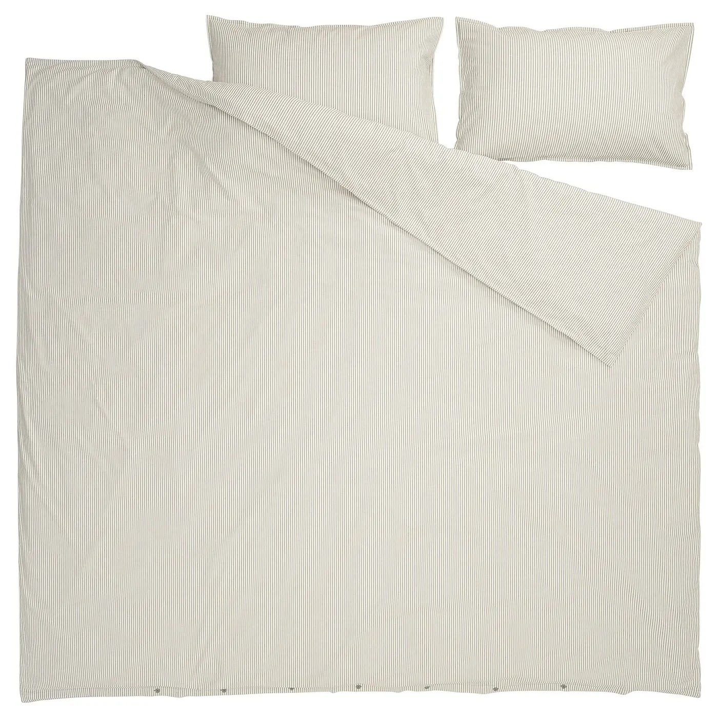 Комплект постельного белья Ikea Solfibbla из мягкого хлопка с классическими полосками, окрашенными в массе. Плотная пряжа дарит ощущение уюта, винтажного шарма и ручной работы.